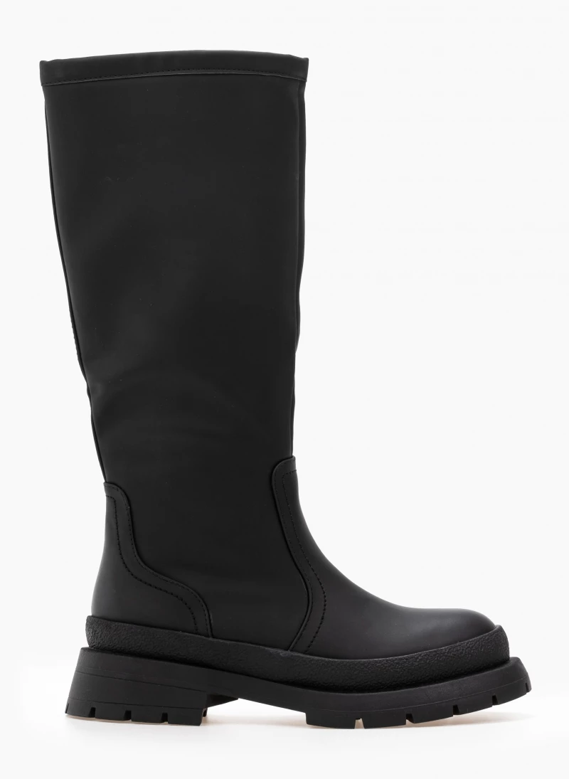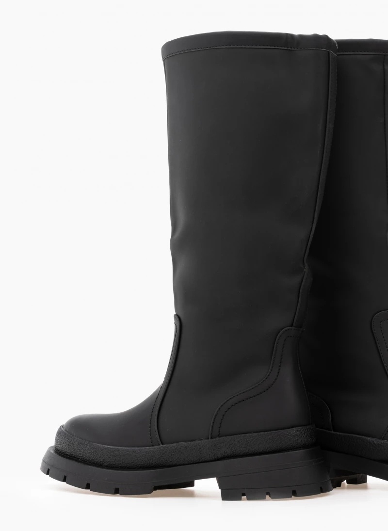 Ματ ίσιες μπότες με ιδιαίτερη σόλα. Στρογγυλή γραμμή.