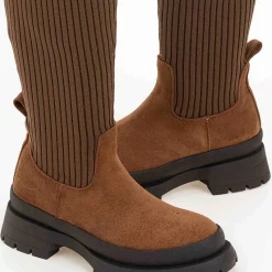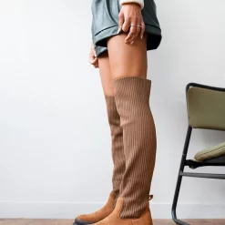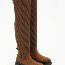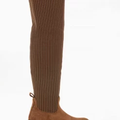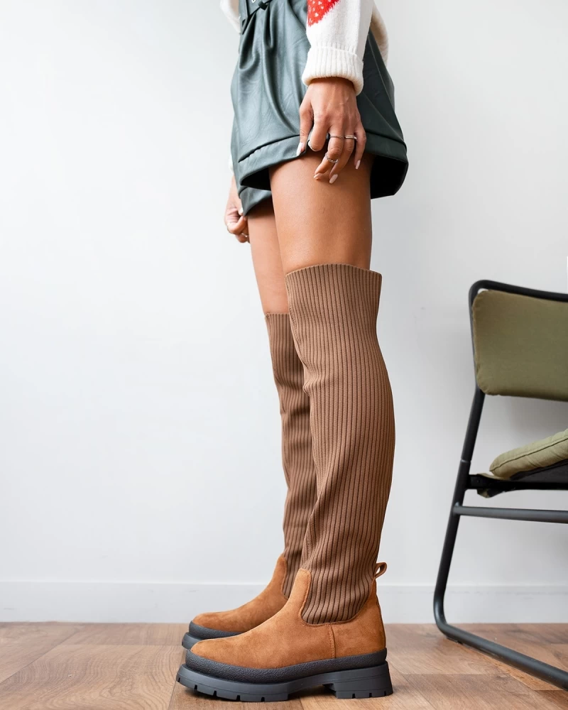 Suede μπότες κάλτσα πάνω από το γόνατο. Έχουν chunky σόλα και θηλάκι στο πίσω μέρος.