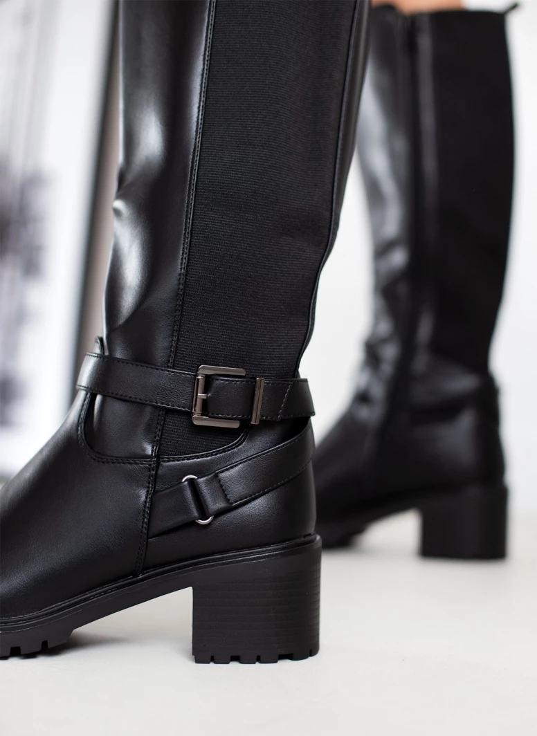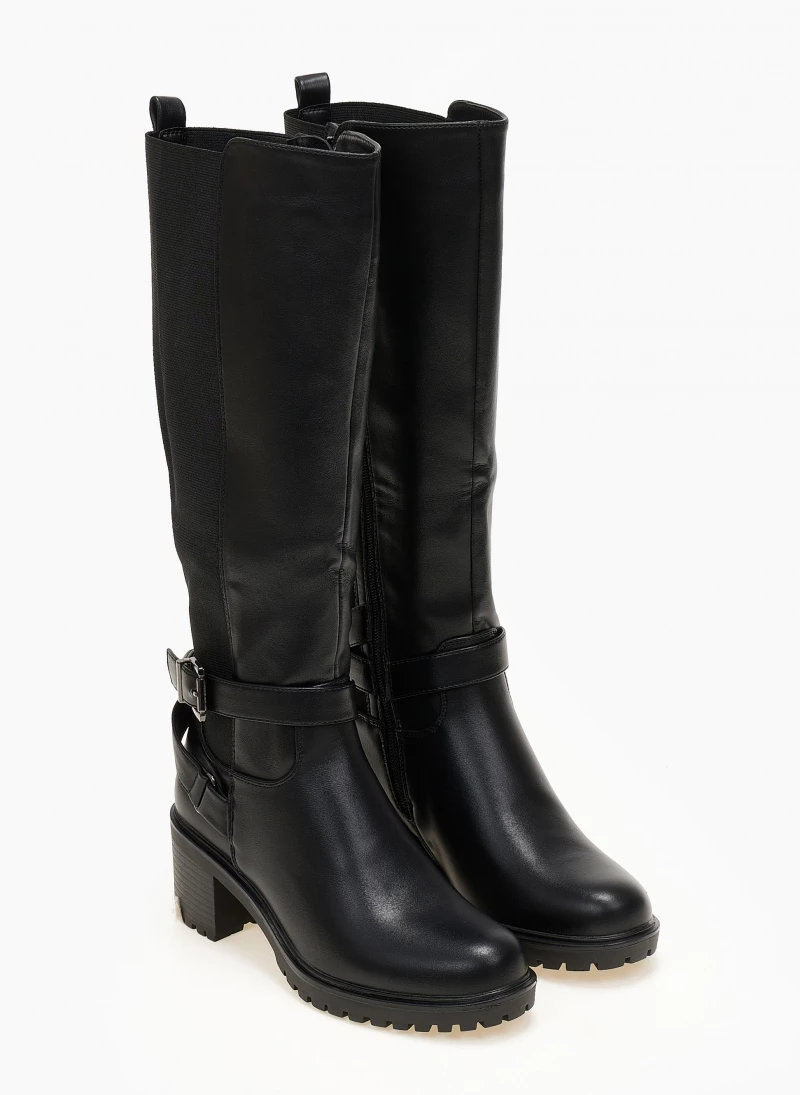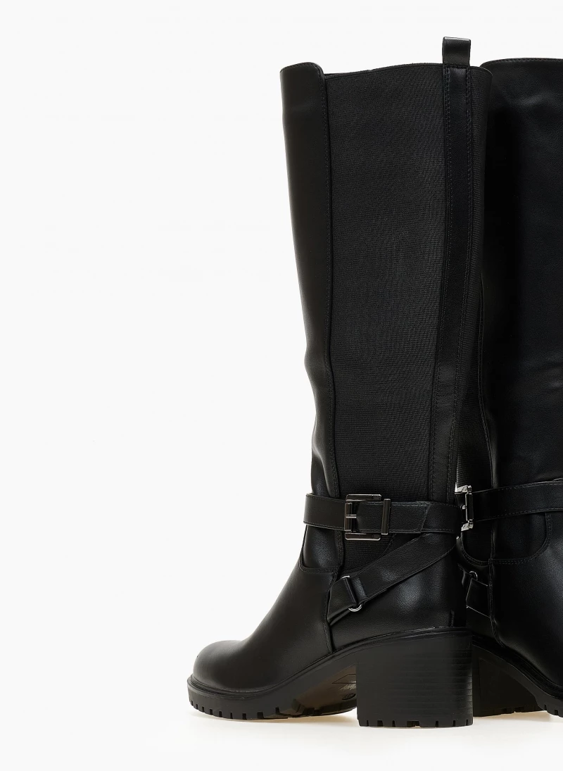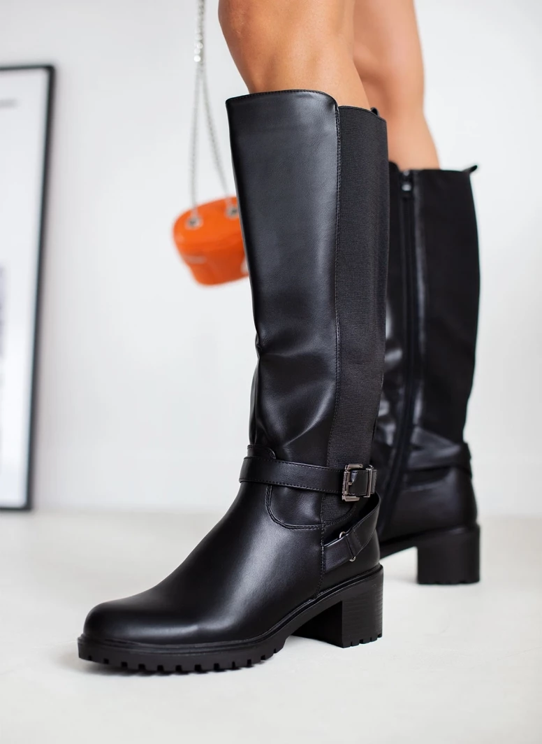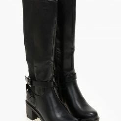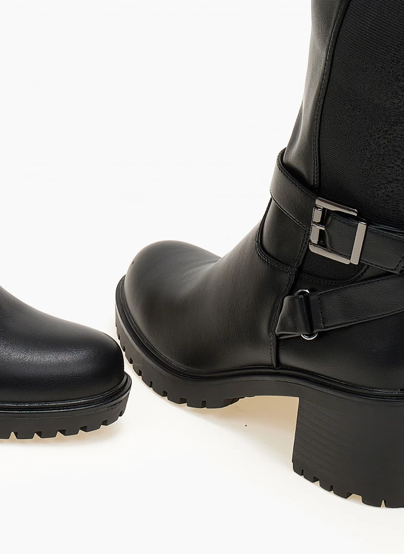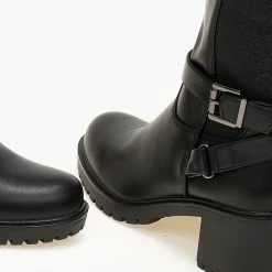 Μπότες casual με χαμηλό τετράγωνο τακούνι. Έχουν χιαστί ζωνάκια στο ύψος του αστραγάλου. Στρογγυλή γραμμή.