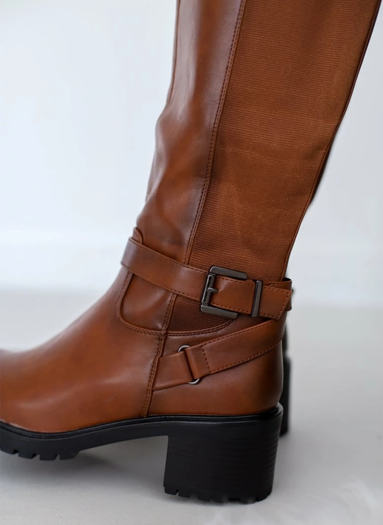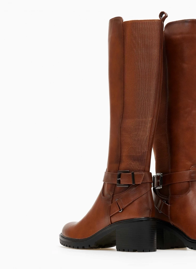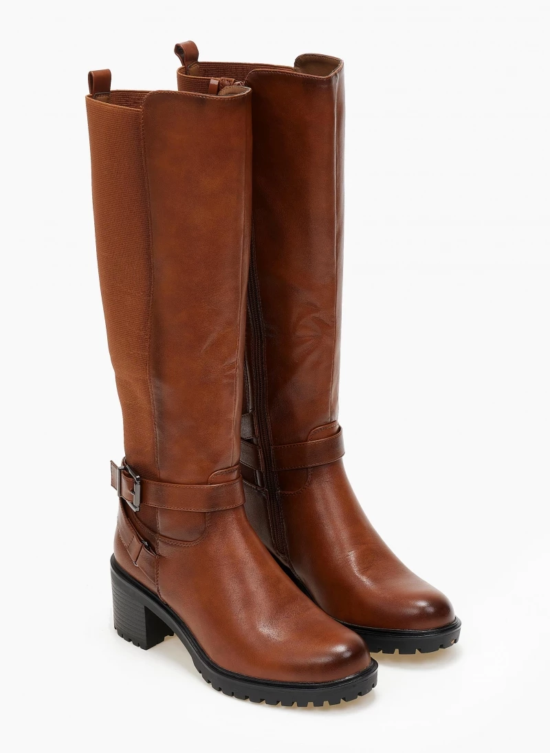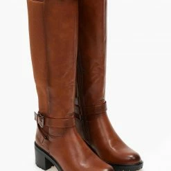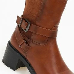 Μπότες casual με χαμηλό τετράγωνο τακούνι. Έχουν χιαστί ζωνάκια στο ύψος του αστραγάλου. Στρογγυλή γραμμή.