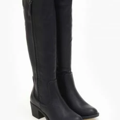 Μπότες σε στρογγυλή γραμμή με χαμηλό τακούνι. Έχουν διακοσμητικό φερμουάρ στην εξωτερική τους πλευρά. Διακριτικό άνοιγμα με λάστιχο στο επάνω μέρος για καλύτερη εφαρμογή.
