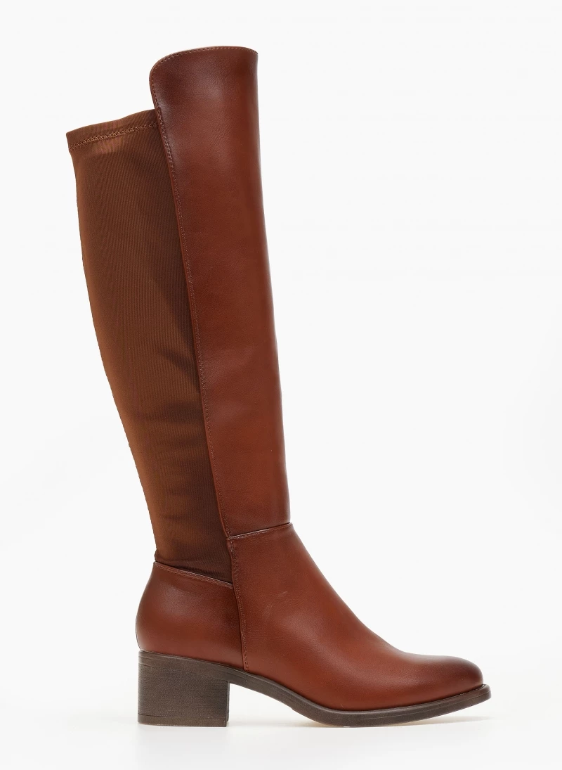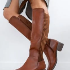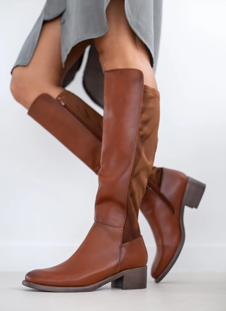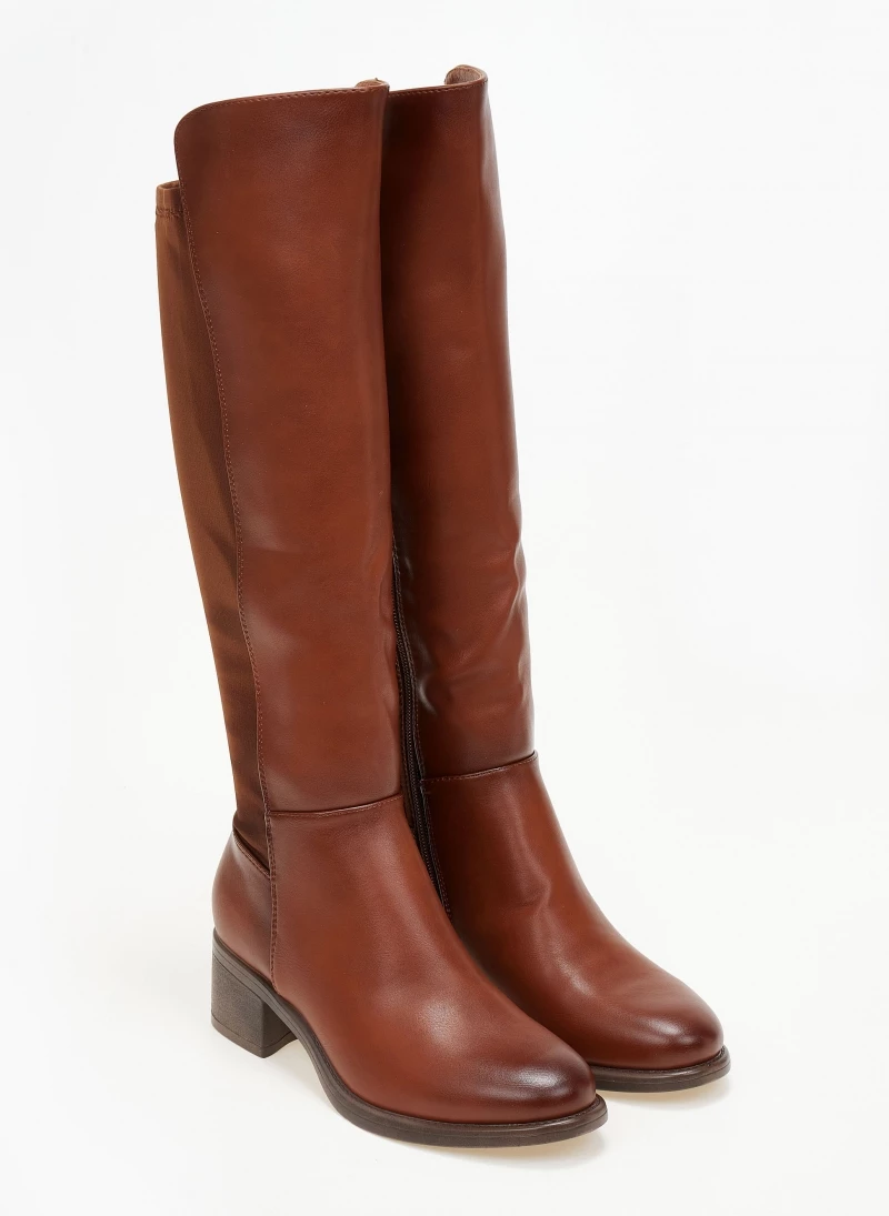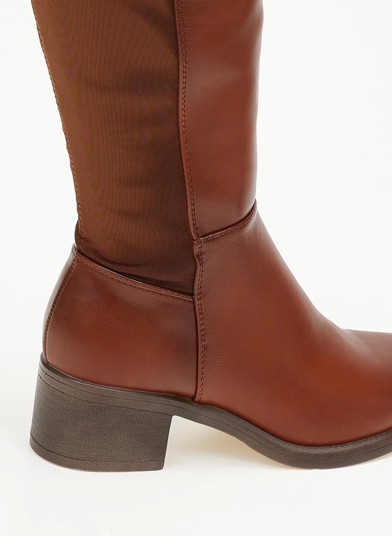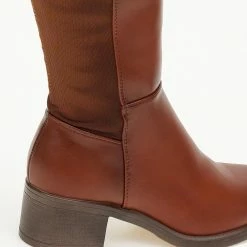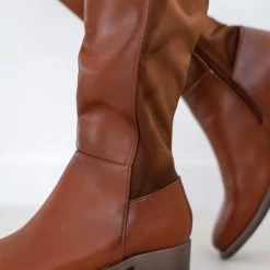 Casual μπότες με χαμηλό τετράγωνο τακούνι. Συνδυάζουν τεχνόδερμα και ύφασμα lykra στο πίσω μέρος για καλύτερη εφαρμογή. Έχουν άνισο τελείωμα στο πάνω μέρος.