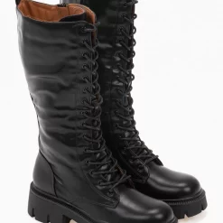 Casual μπότες με τρακτερωτή σόλα και κορδόνια. Στρογγυλή γραμμή.