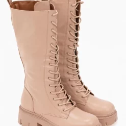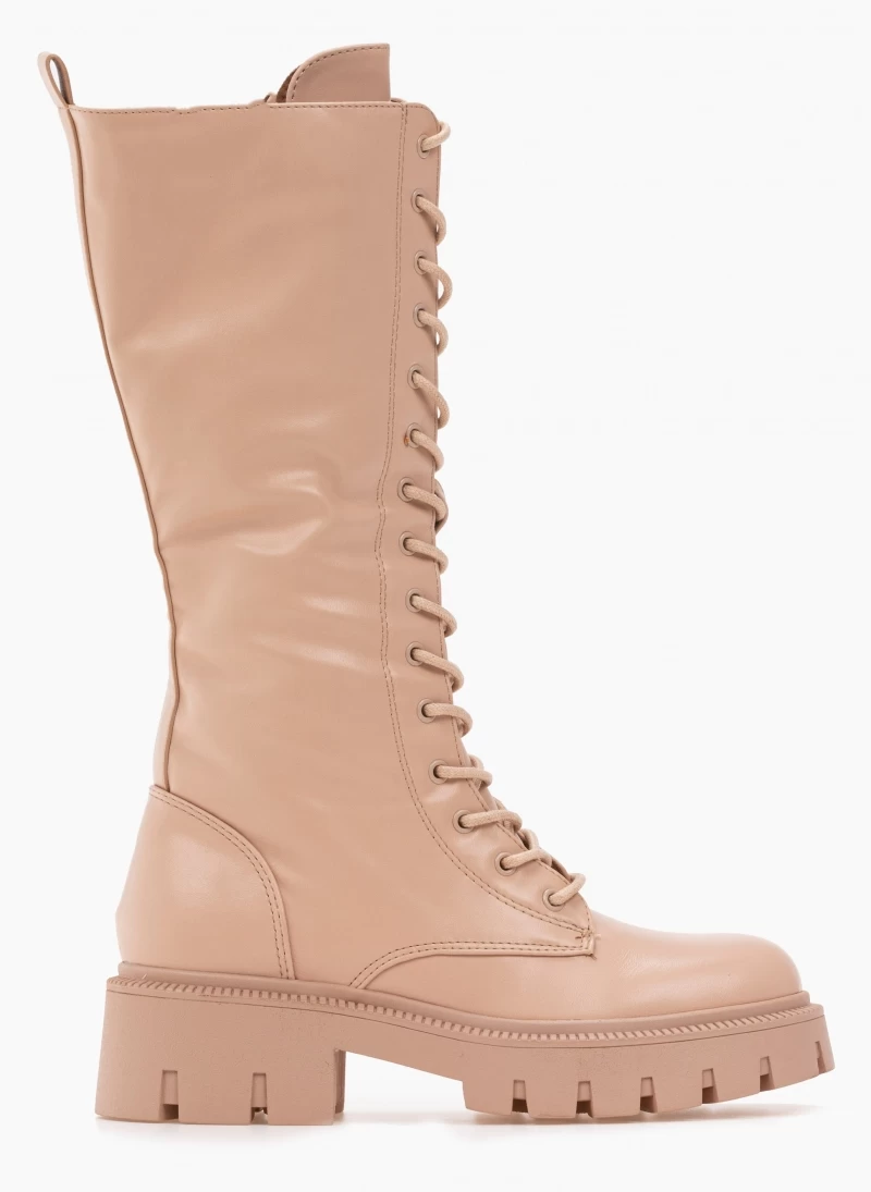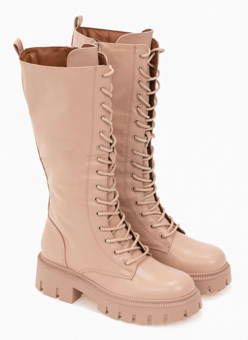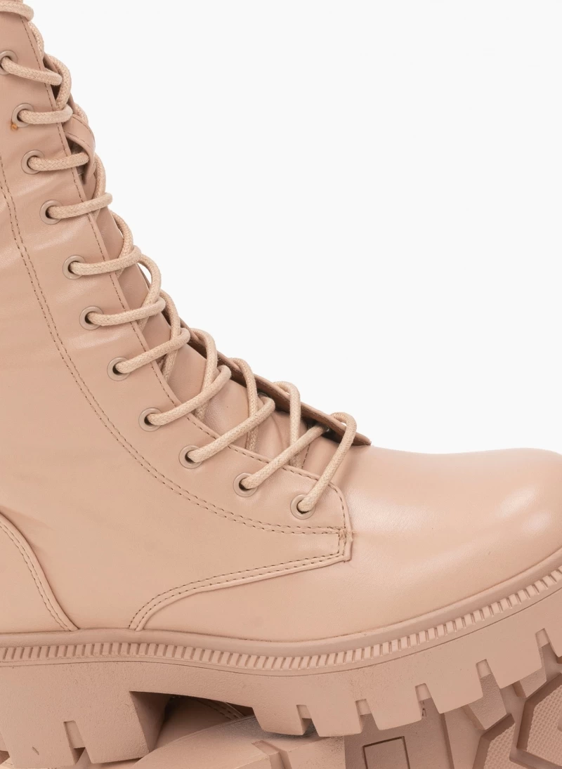 Casual μπότες με τρακτερωτή σόλα και κορδόνια. Στρογγυλή γραμμή.
