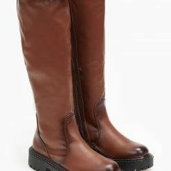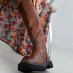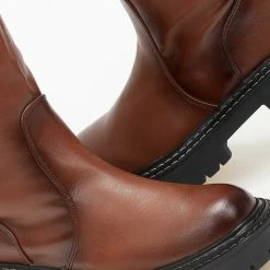 Μπότες σε στρογγυλή γραμμή. Έχουν ελαστικό τμήμα για καλύτερη εφαρμογή. Τρακτερωτή σόλα με εξωτερικές ραφές.