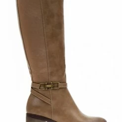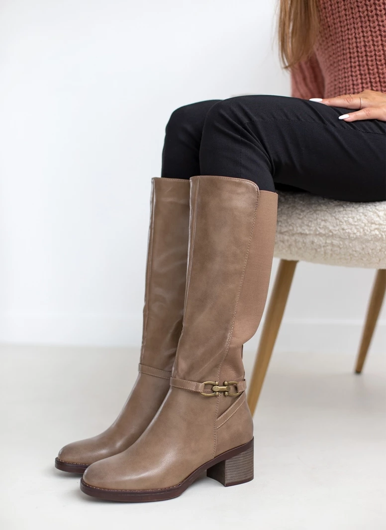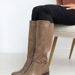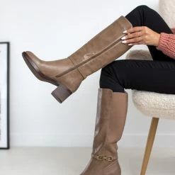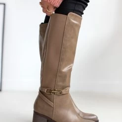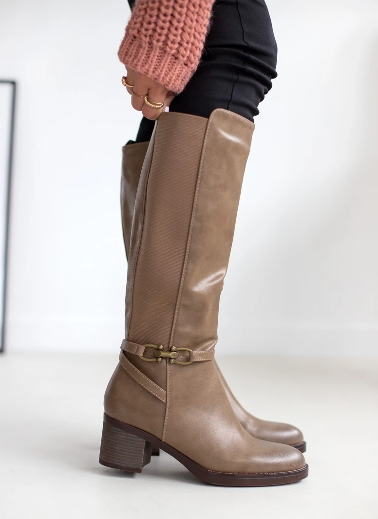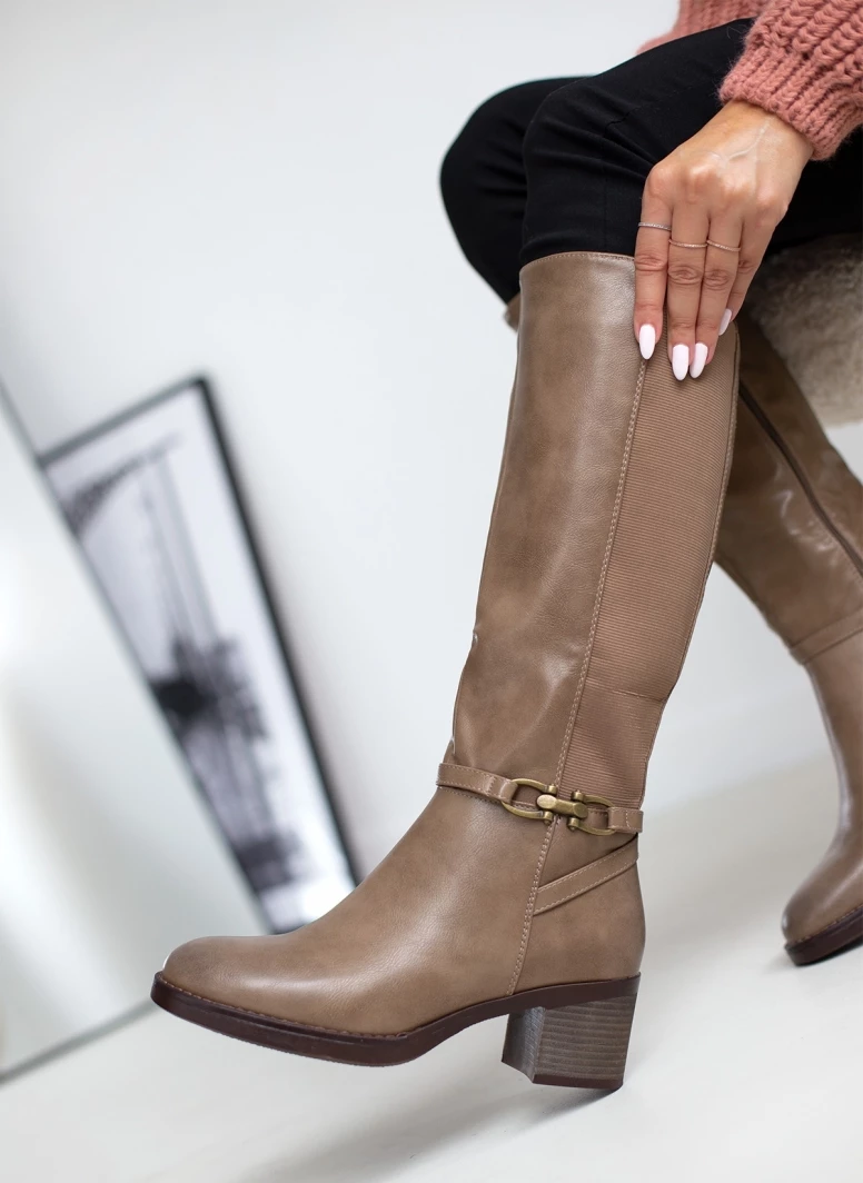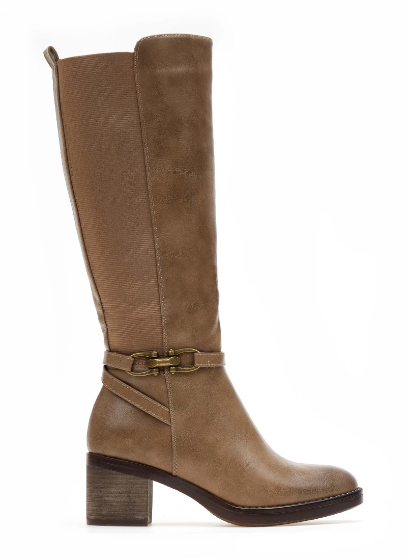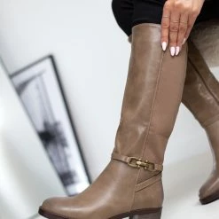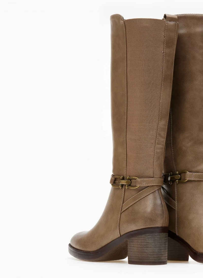 Μπότες με κρέπ χαμηλό τακούνι. Στο εσωτερικό τους έχουν φερμουάρ.Στο πλάι έχουν λάστιχο και ζωνάκι με μεταλλική λεπτομέρεια.
