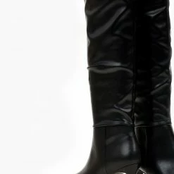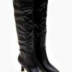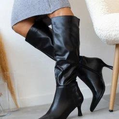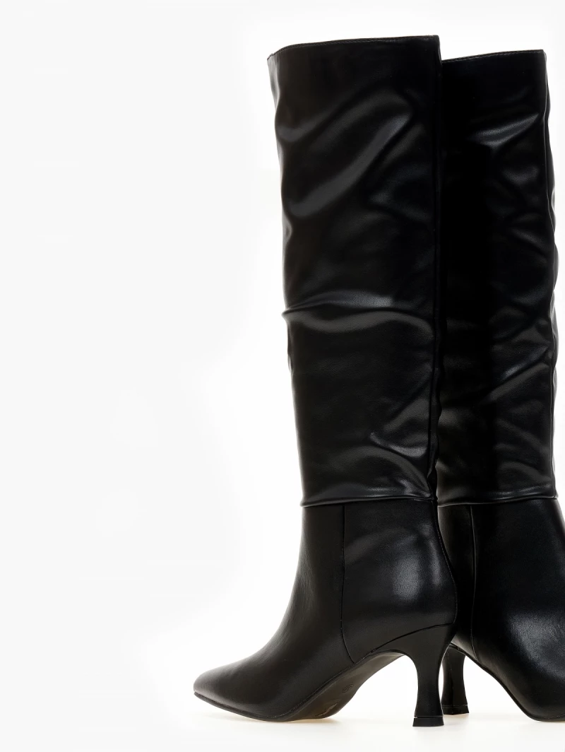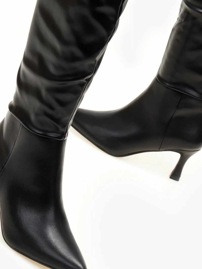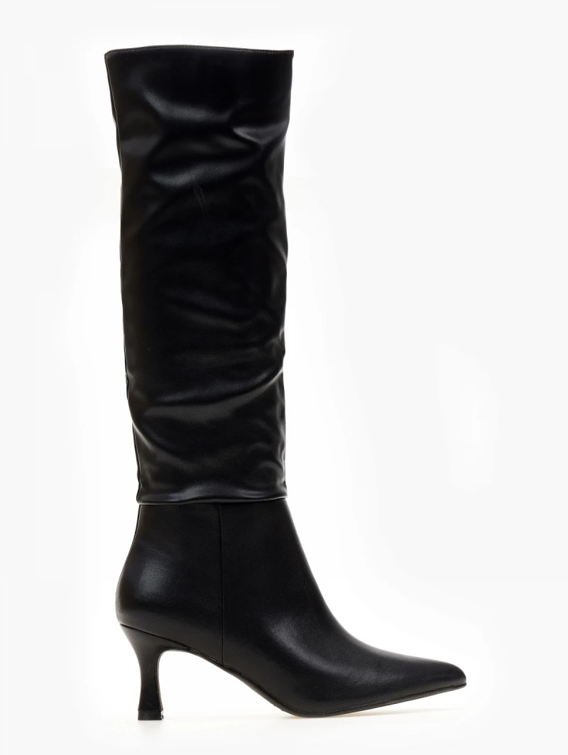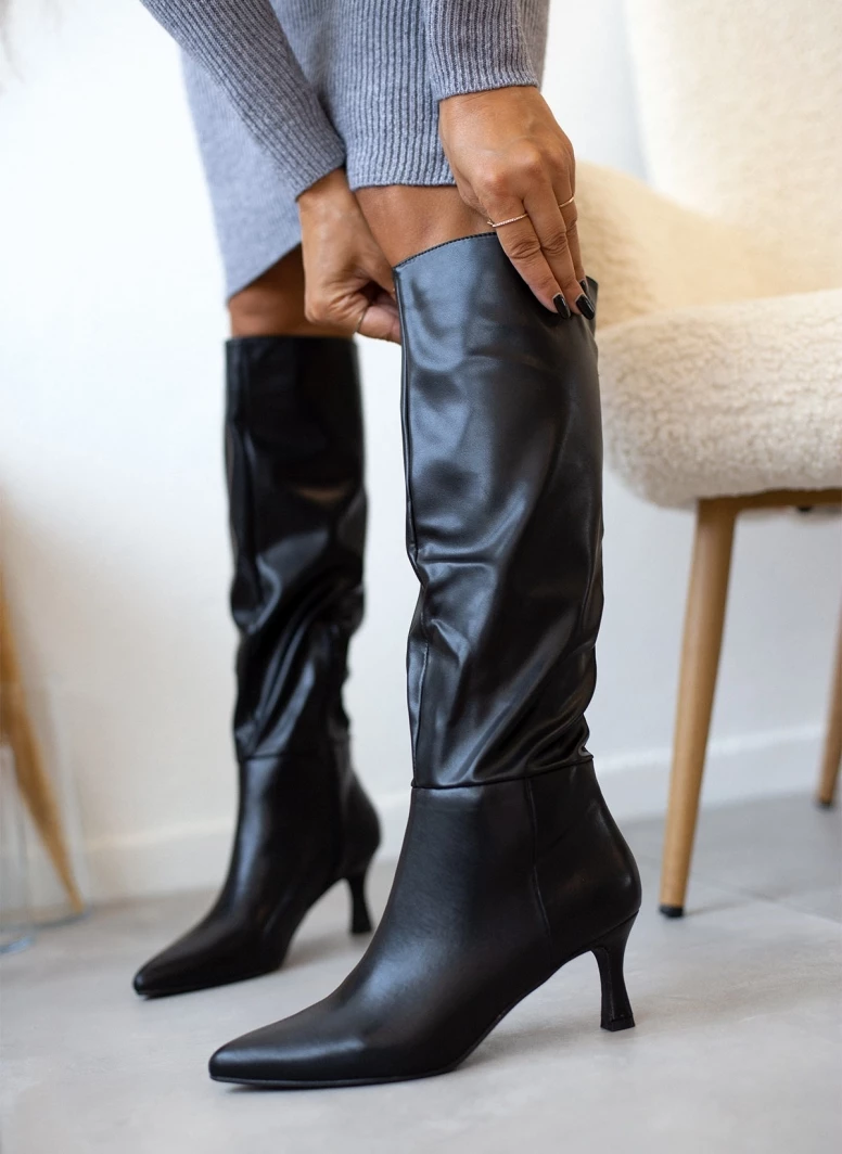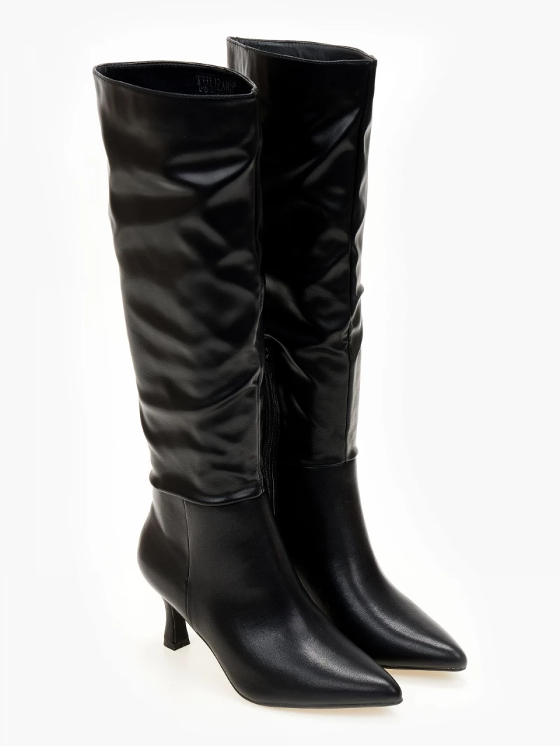 Μπότες μυτερές με χαμηλό λεπτό τακούνι. Έχουν φερμουάρ στην εσωτερική τους πλευρά.