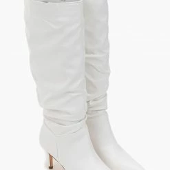 Μυτερές μπότες με λεπτό τακούνι.Έχουν σχέδιο σούρες στη γάμπα.
