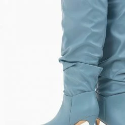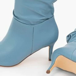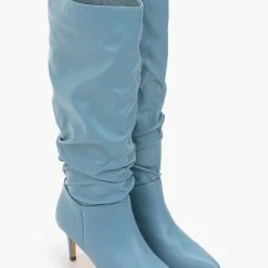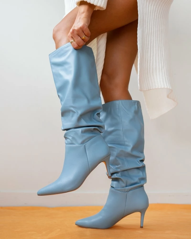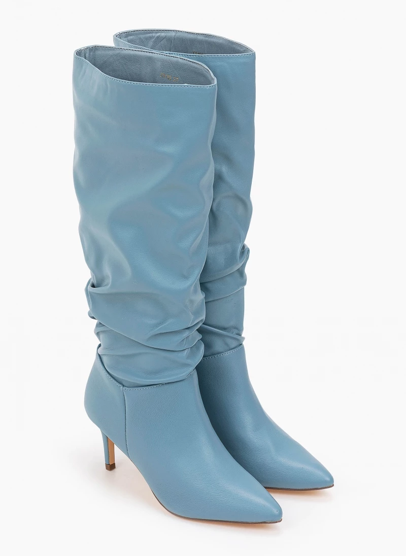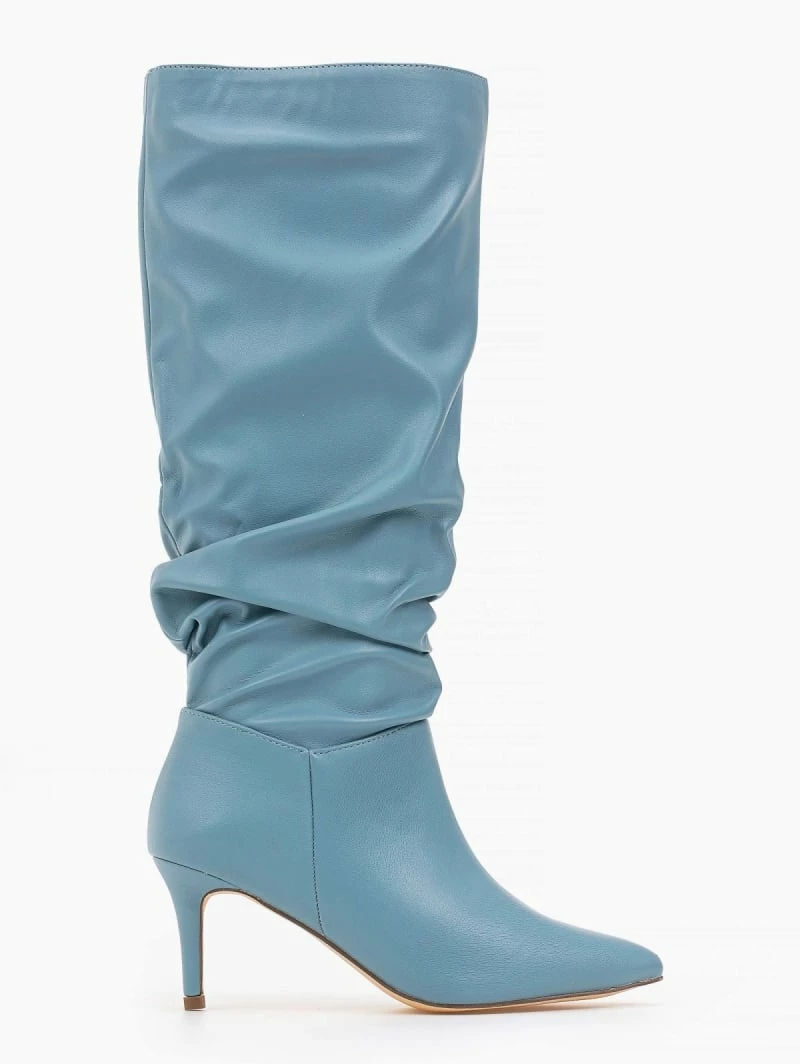 Μυτερές μπότες με λεπτό τακούνι.Έχουν σχέδιο σούρες στη γάμπα.