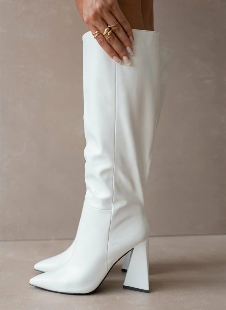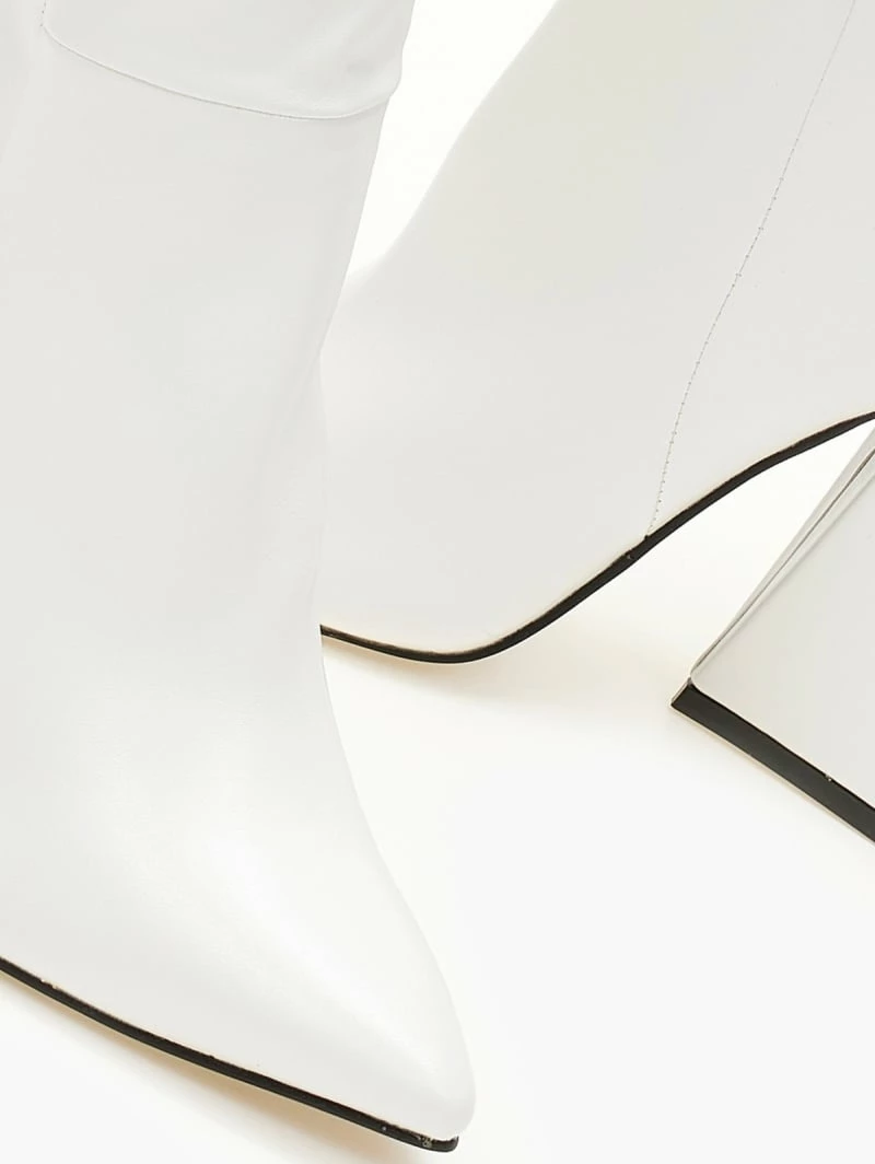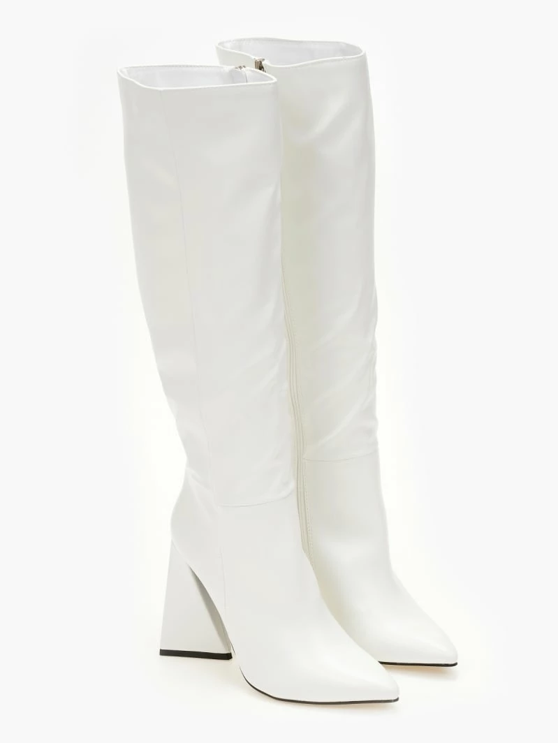 Μπότες με ψηλό τρίγωνο τακούνι. Έχουν κάθετη ραφή στην εξωτερική τους πλευρά. Μυτερή φόρμα.