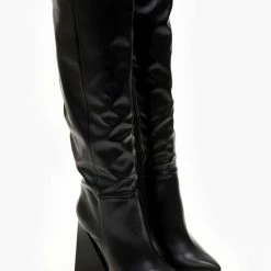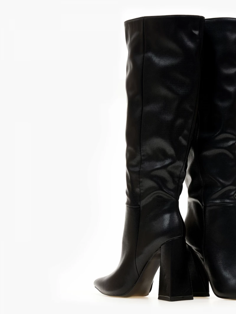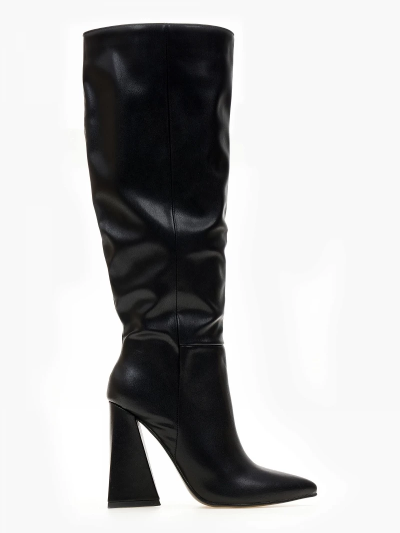 Μπότες με ψηλό τρίγωνο τακούνι. Έχουν κάθετη ραφή στην εξωτερική τους πλευρά. Μυτερή φόρμα.