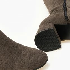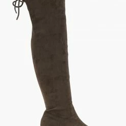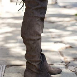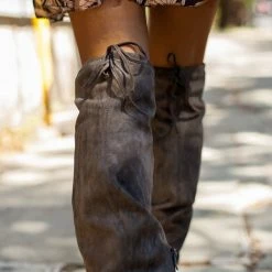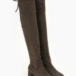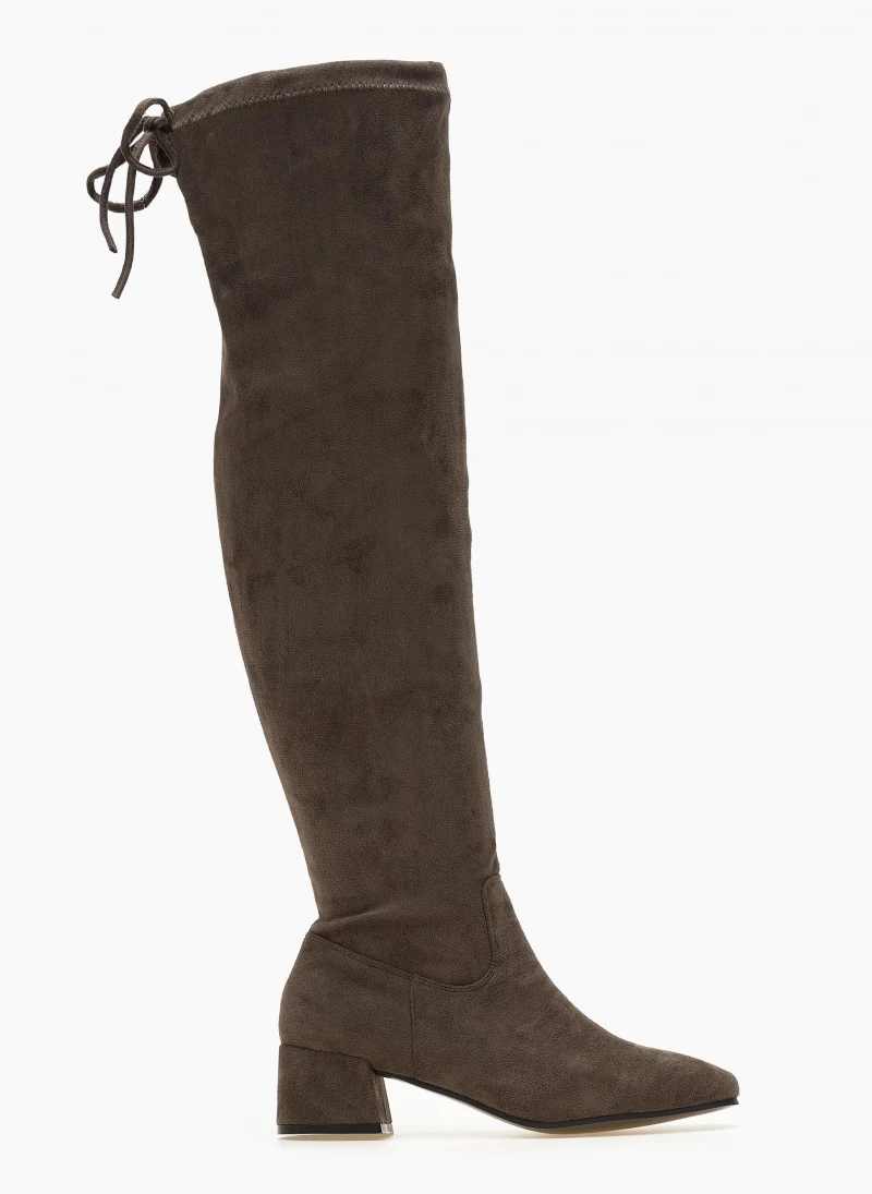 Μπότες casual πάνω από το γόνατο. Έχουν χαμηλό τετράγωνο τακούνι. Μικρό άνοιγμα στο πίσω μέρος με κορδόνι που σφίγγει.