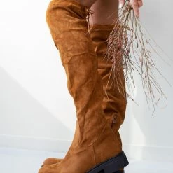 Φλατ suede μπότες πάνω από το γόνατο.Έχουν λεπτομέρεια κορδονάκι που σφίγγει στο τελείωμα.Στρογγυλή φόρμα.