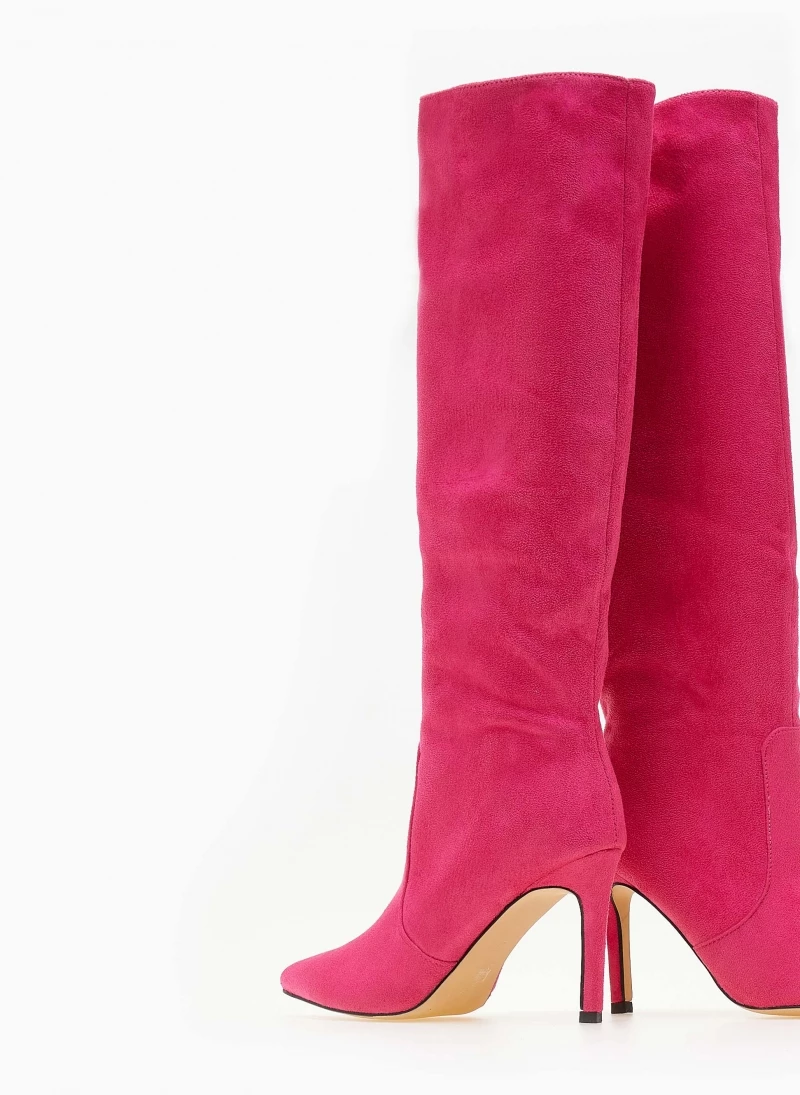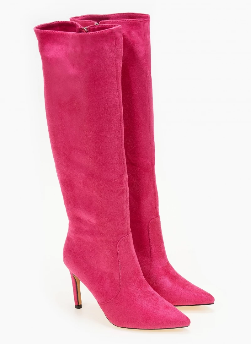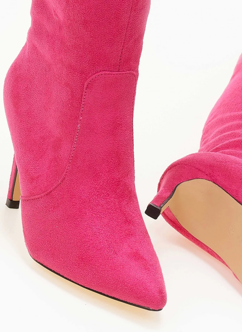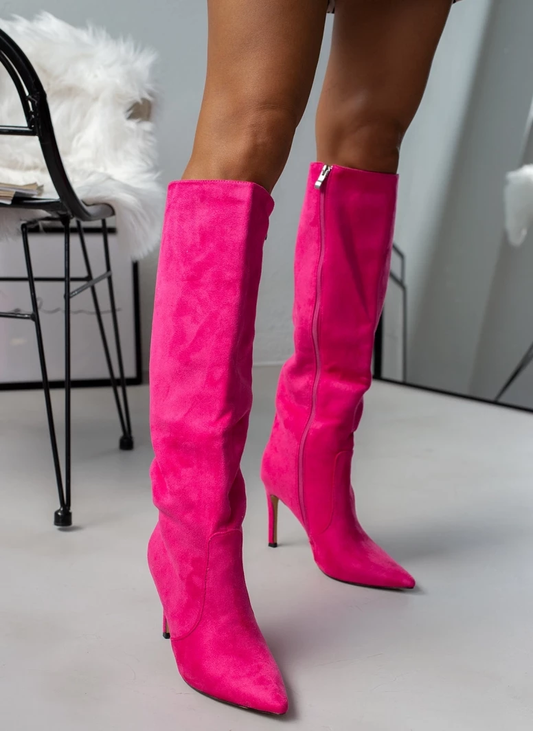 Suede μπότες με λεπτό τακούνι. Έχουν μυτερή γραμμή. Διαθέτουν φερμουάρ στο εσωτερικό.