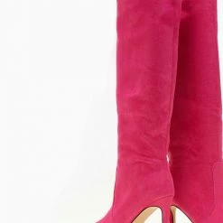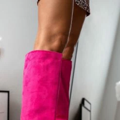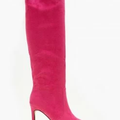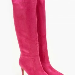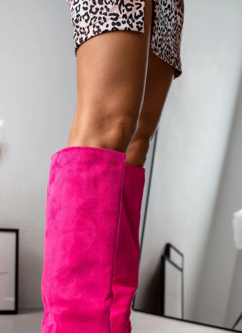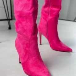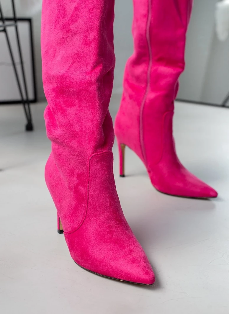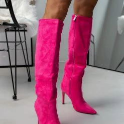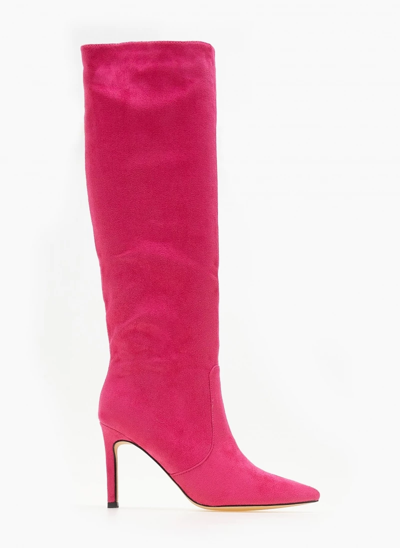 Suede μπότες με λεπτό τακούνι. Έχουν μυτερή γραμμή. Διαθέτουν φερμουάρ στο εσωτερικό.