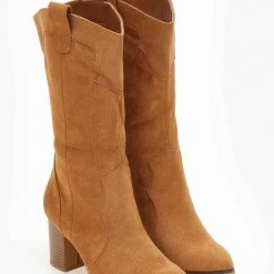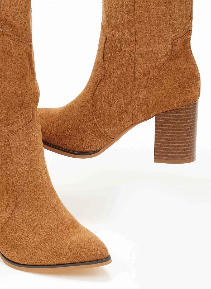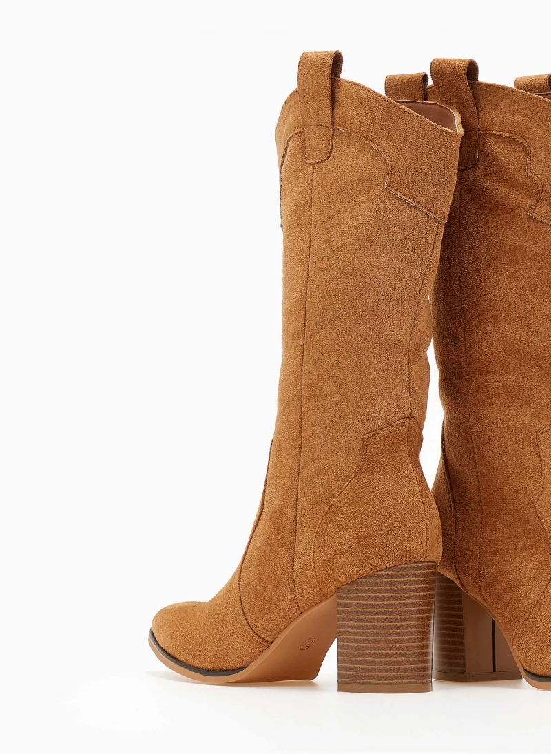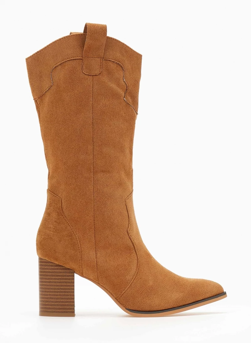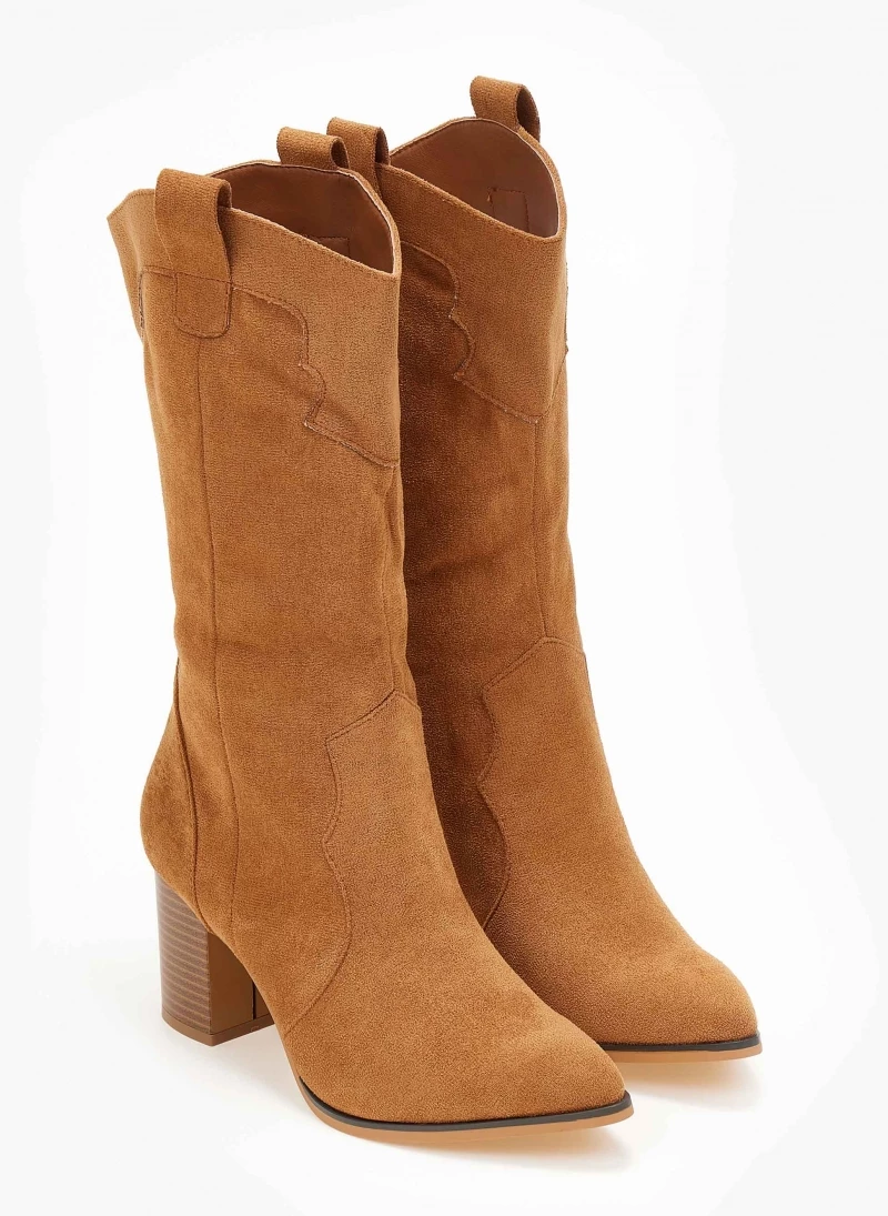 Μπότες western με ψηλό ξύλινο τακούνι. Έχουν οβάλ τελείωμα με θηλάκι. Μυτερή φόρμα.