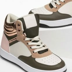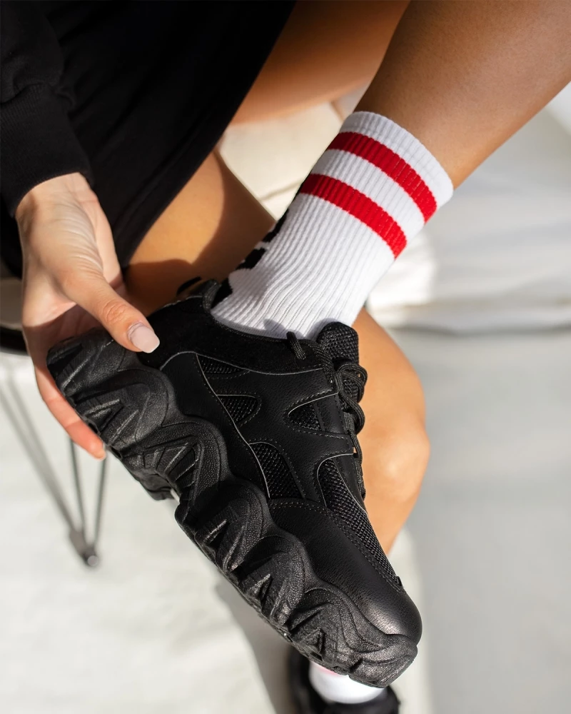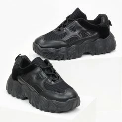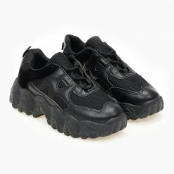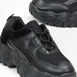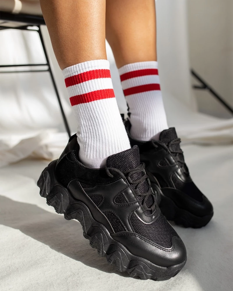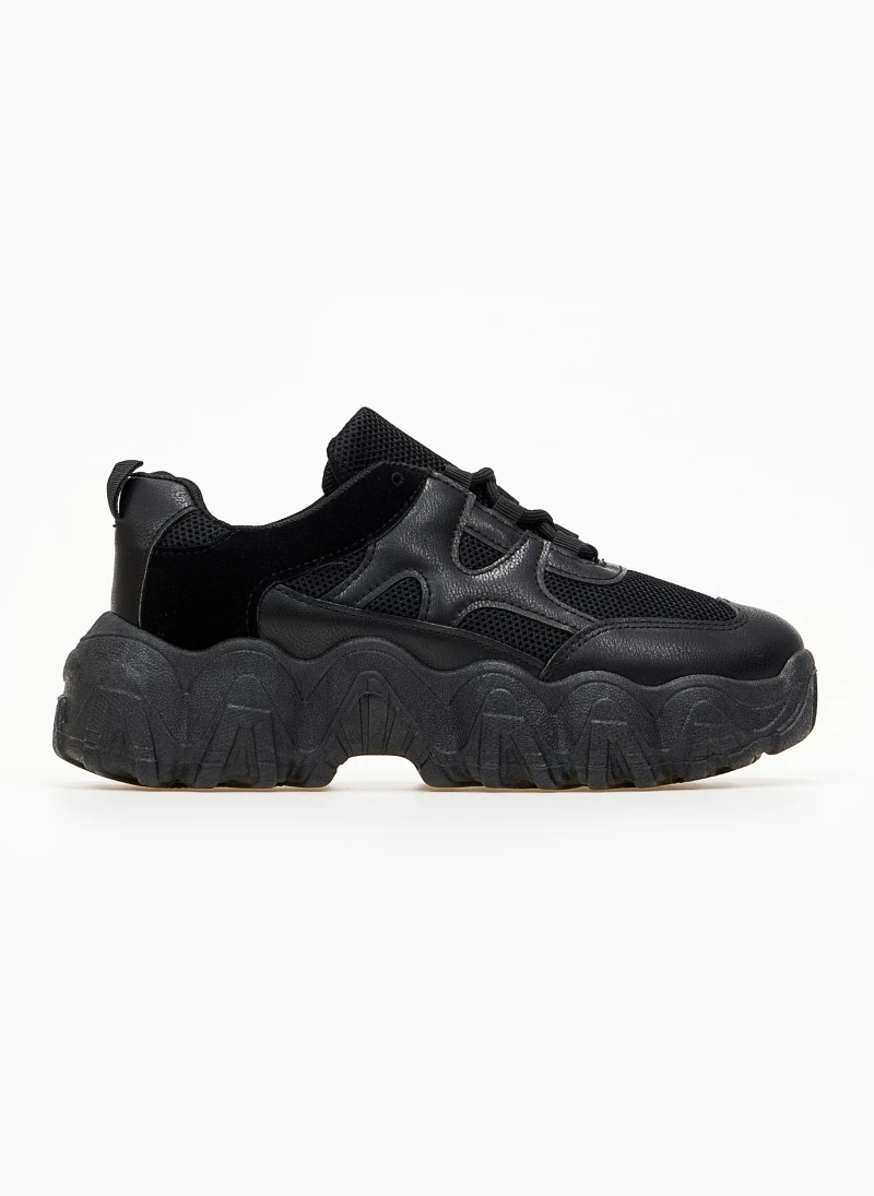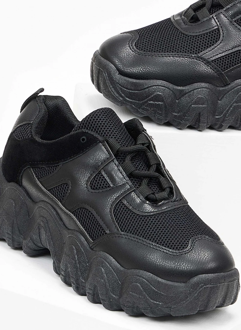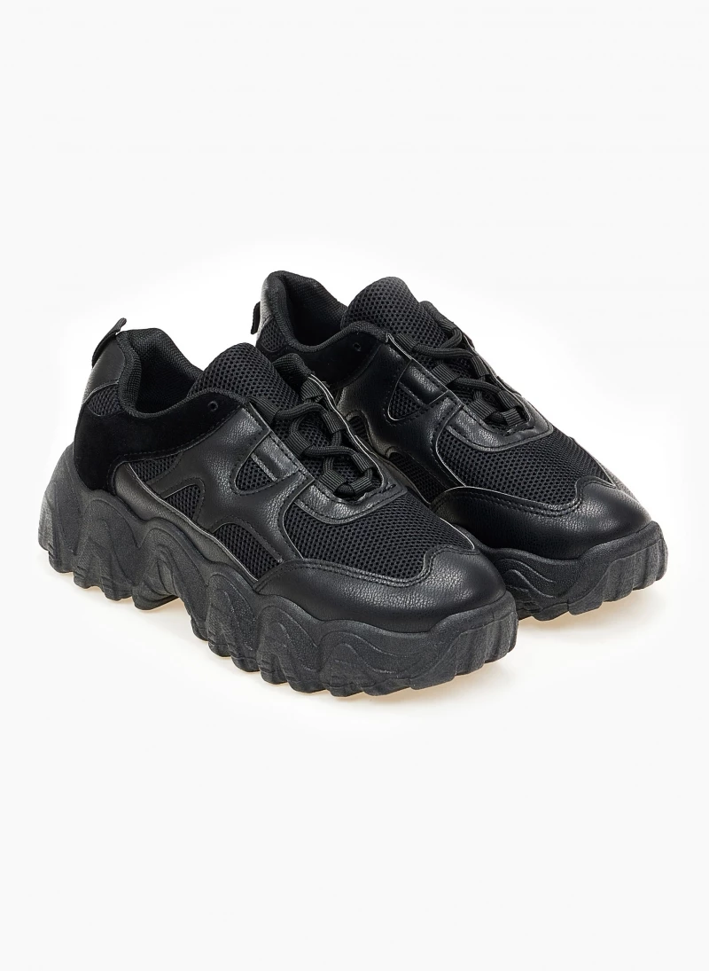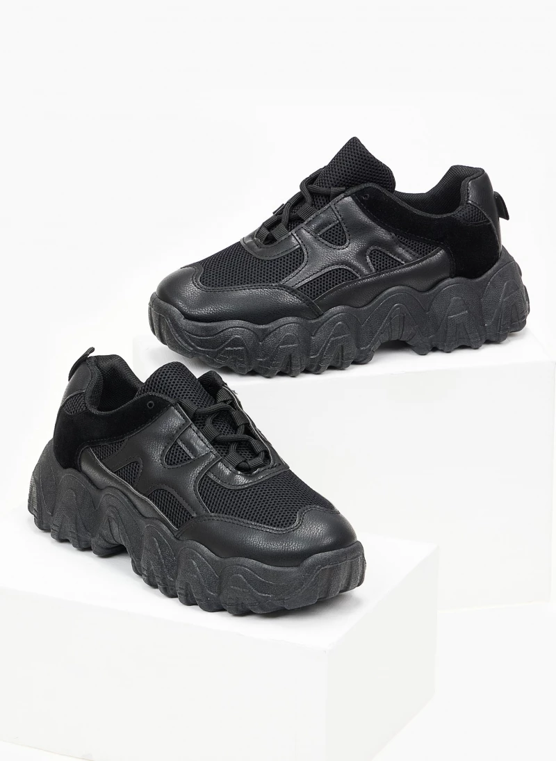 Sneakers με διχρωμία και chunky σόλα με σχέδιο.Συνδυάζουν ύφασμα,τεχνόδερμα και suede.
