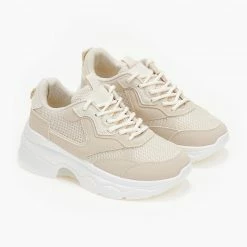 Sneakers με chunky σόλα με σχέδιο. Συνδυάζουν διάτρητο ‘υφασμα και τεχνόδερμα.