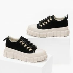 Suede sneakers με chunky σόλα. Έχουν θηλάκι στο πίσω μέρος.