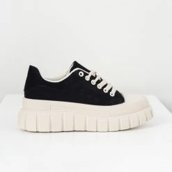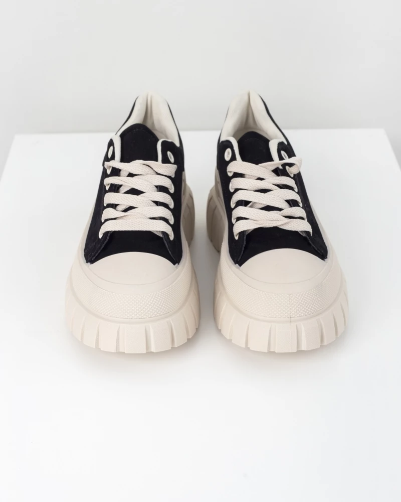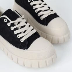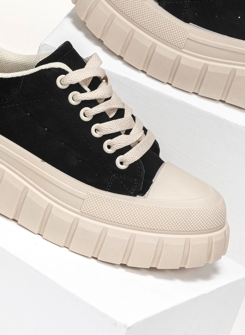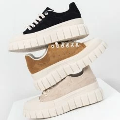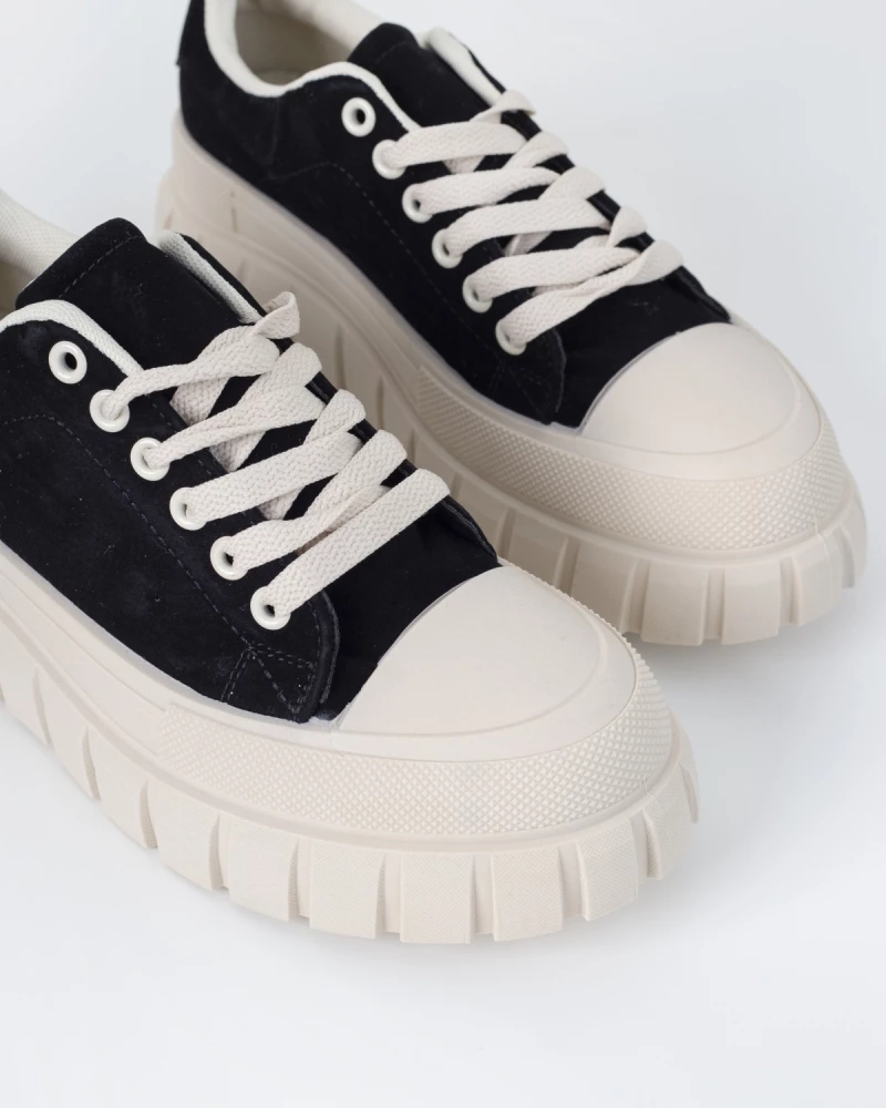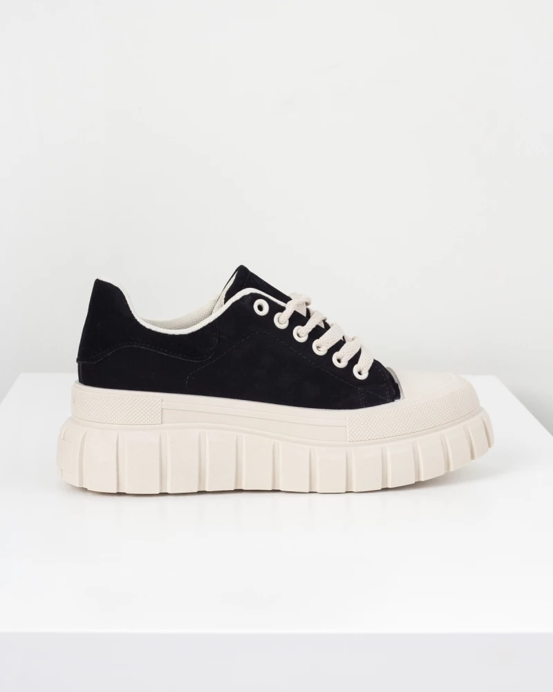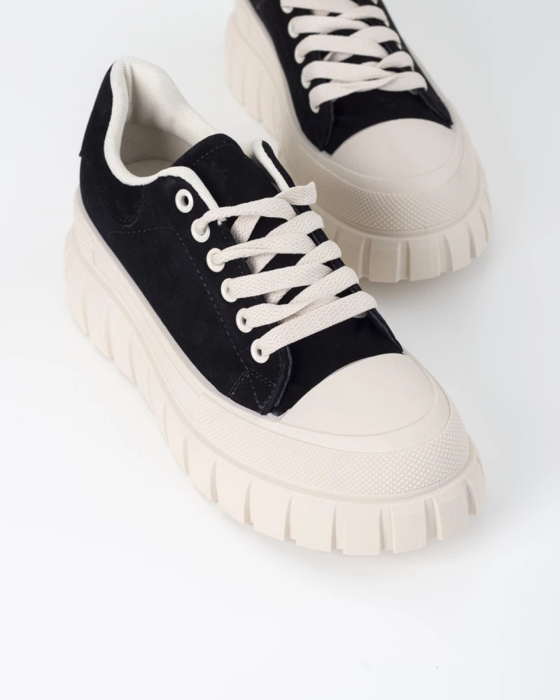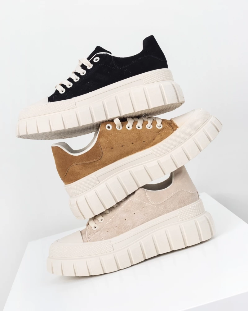 Suede sneakers με κορδόνια. Έχουν ψηλή σόλα με ανάγλυφα σχέδια.