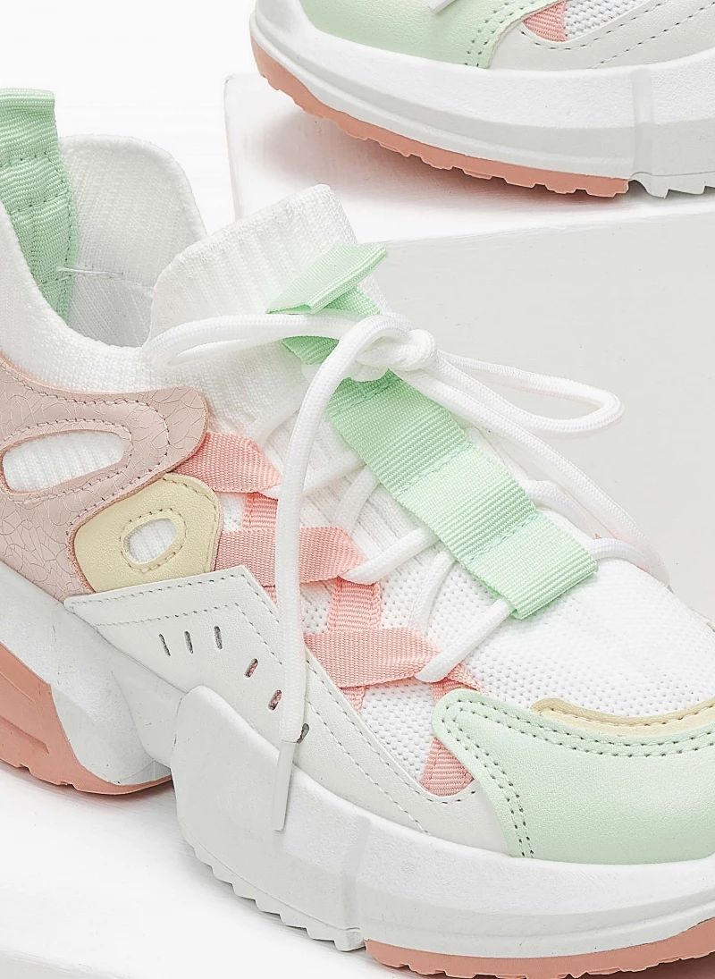 Sneakers συνδυασμούς υλικών και χρωμάτων. Έχουν chunky σόλα με ανάγλυφο σχέδιο.