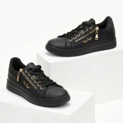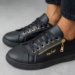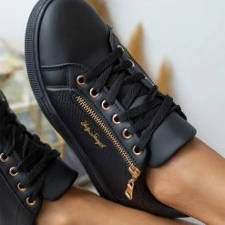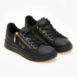 Sneakers κροκό με φερμουάρ στην εξωτερική τους πλευρά. Δένουν με κορδόνια.