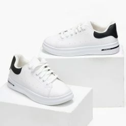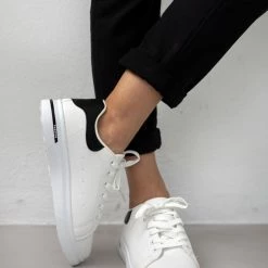 Sneakers με διακριτική διχρωμία στο πίσω μέρος. Έχουν λεπτή ρίγα στη σόλα.