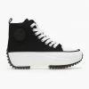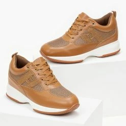 Sneakers με διακριτικά strass και γυαλιστερό ύφασμα.Έχουν εσωτερικό τακούνι.Συνδυάζουν τεχνόδερμα και ύφασμα.