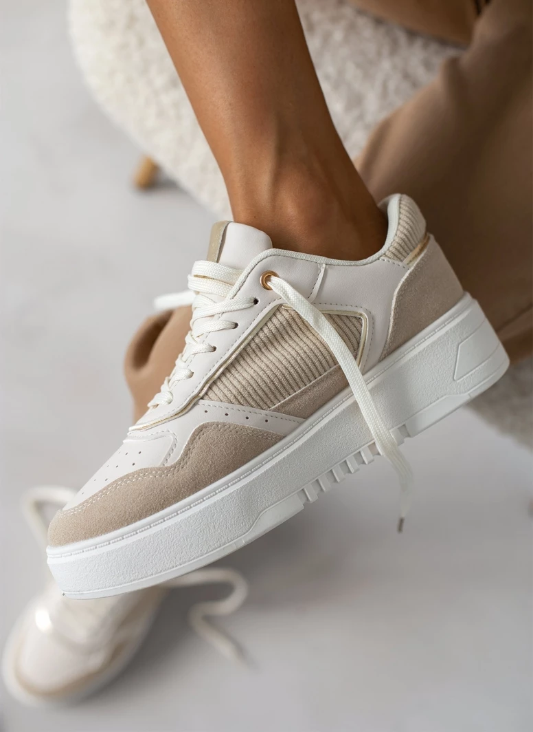 Sneakers με ματ τεχνόδερμα και suede λεπτομέρειες. Flatform σόλα. Μεταλλική λεπτομέρεια στο τελευταίο θηλάκι.