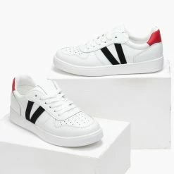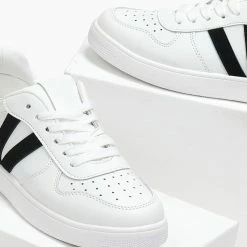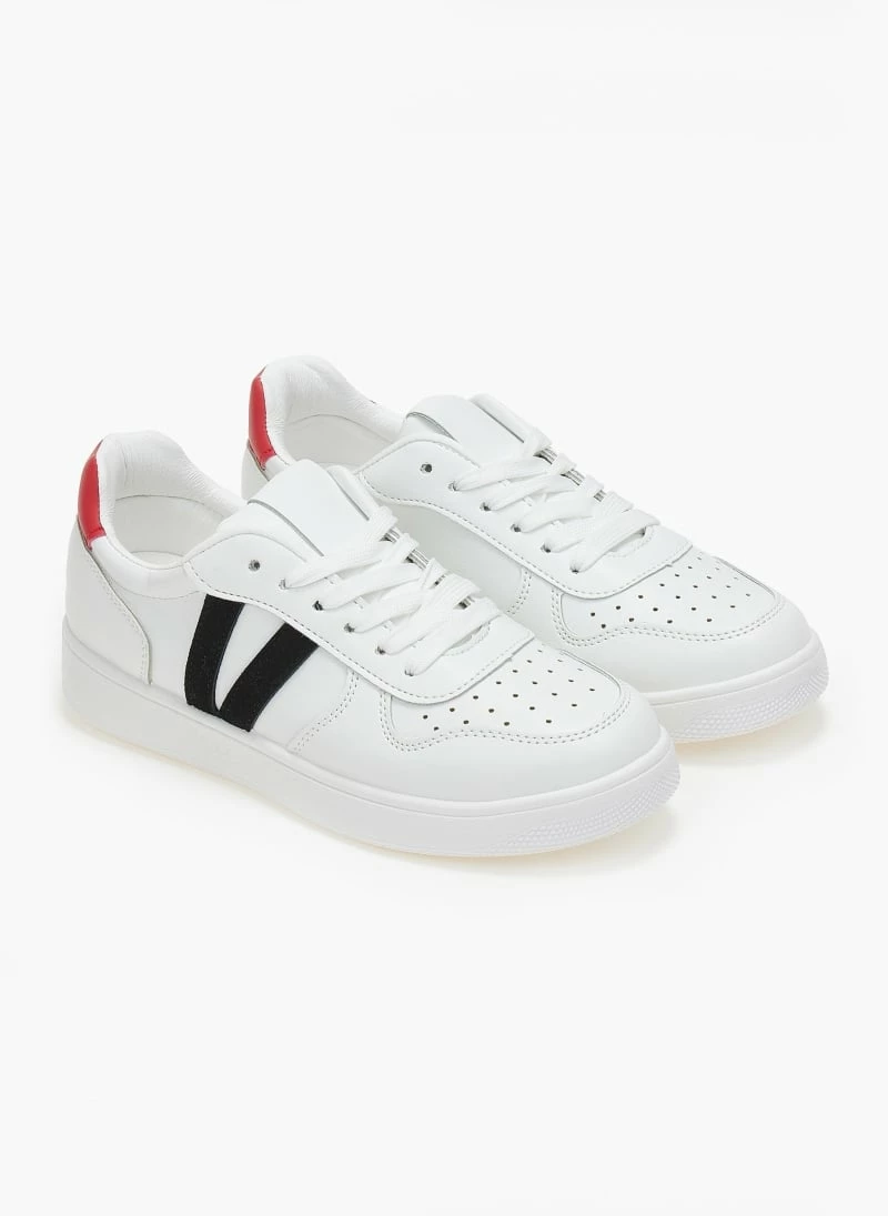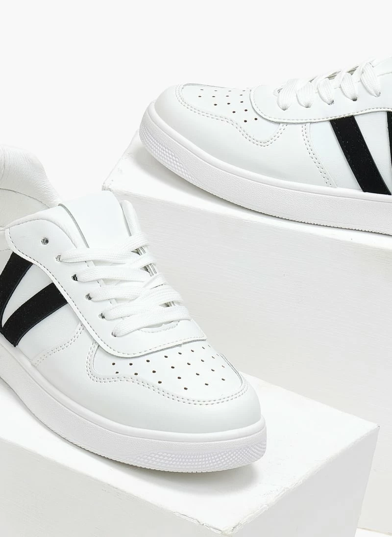 Sneakers flat με κορδόνια. Έχουν ρίγες στο πλάϊ και διχρωμία.