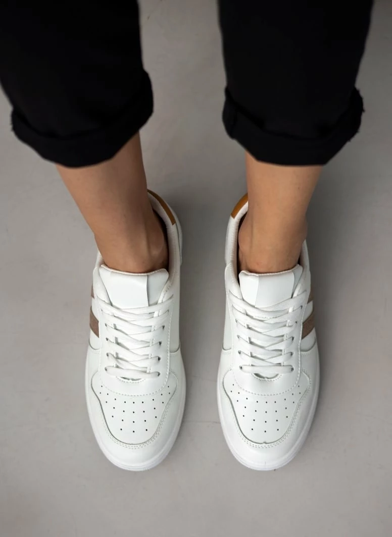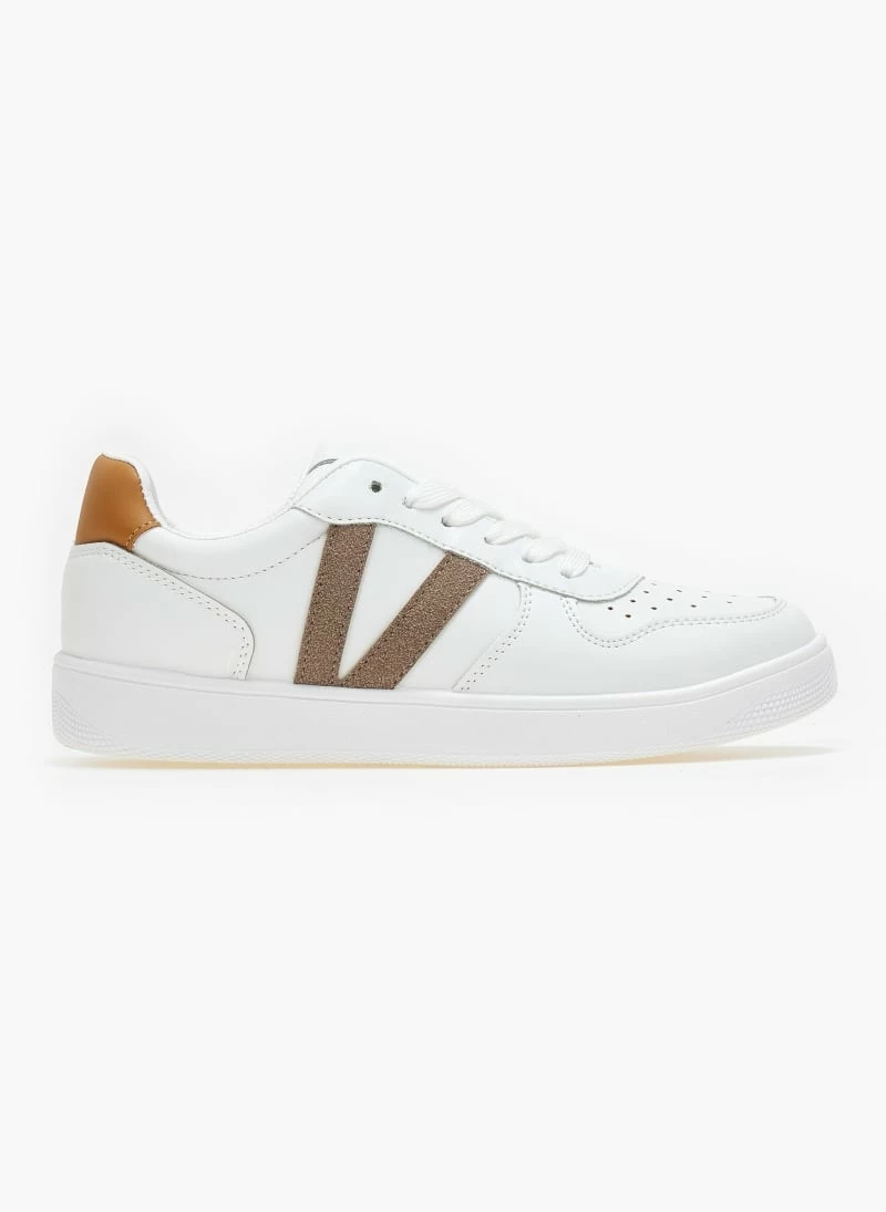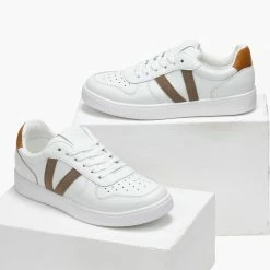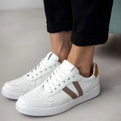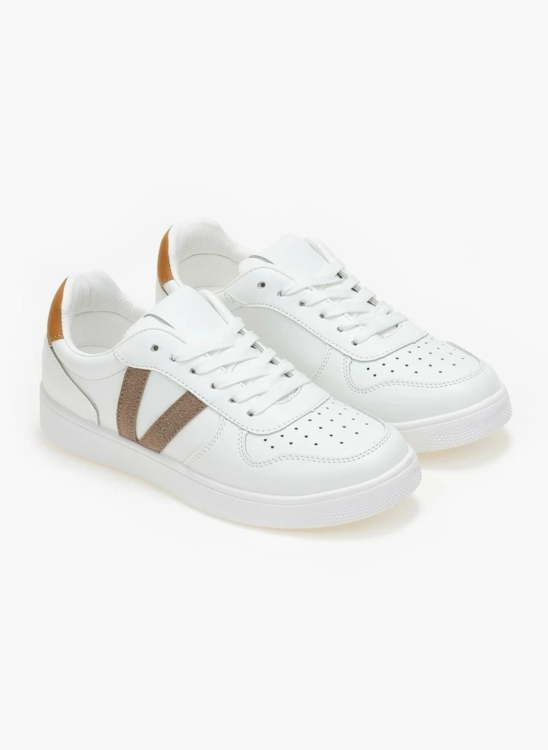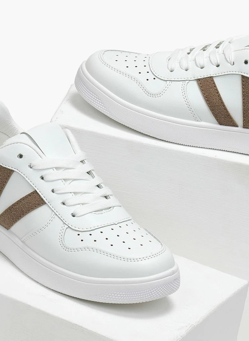 Sneakers flat με κορδόνια. Έχουν ρίγες στο πλάϊ και διχρωμία.