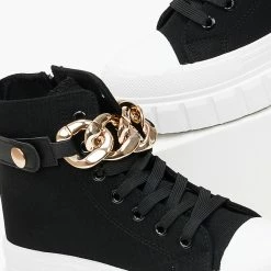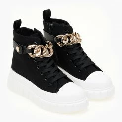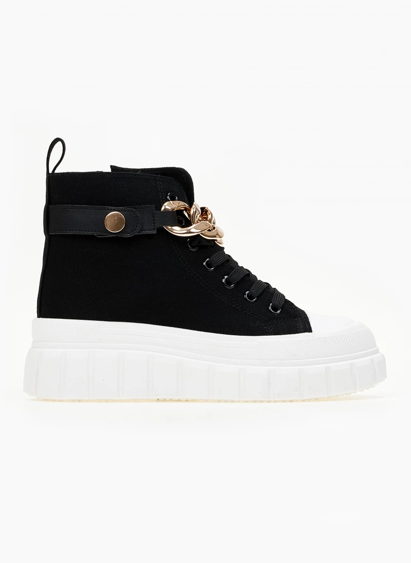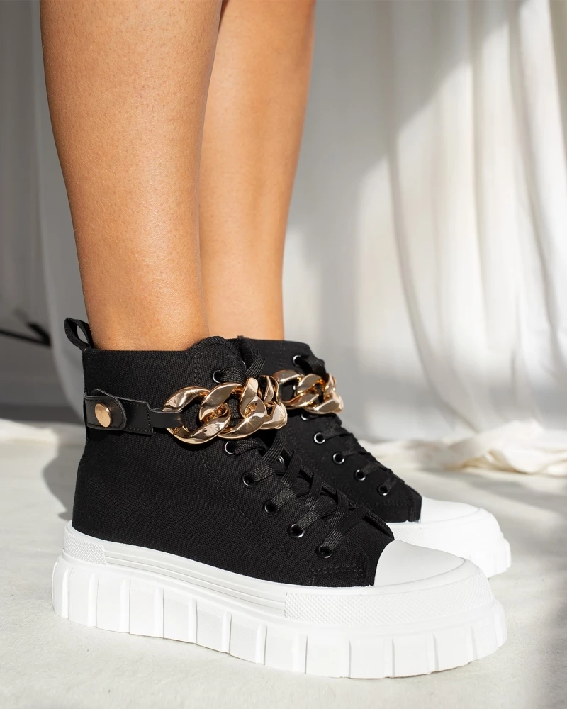 Πάνινα sneakers μποτάκια με αλυσίδα. Έχουν σχέδιο στη σόλα.