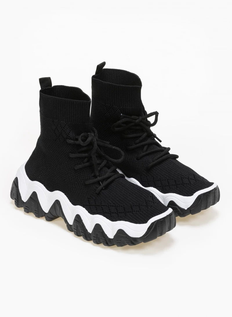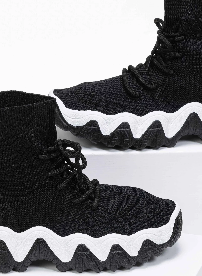 Slip on sneakers μποτάκια με πλεκτό σχέδιο. Έχουν ψηλή chunky σόλα. Διαθέτουν κορδόνια για καλύτερη εφαρμογή.