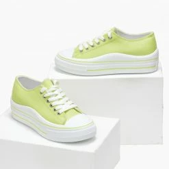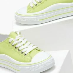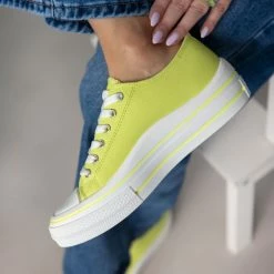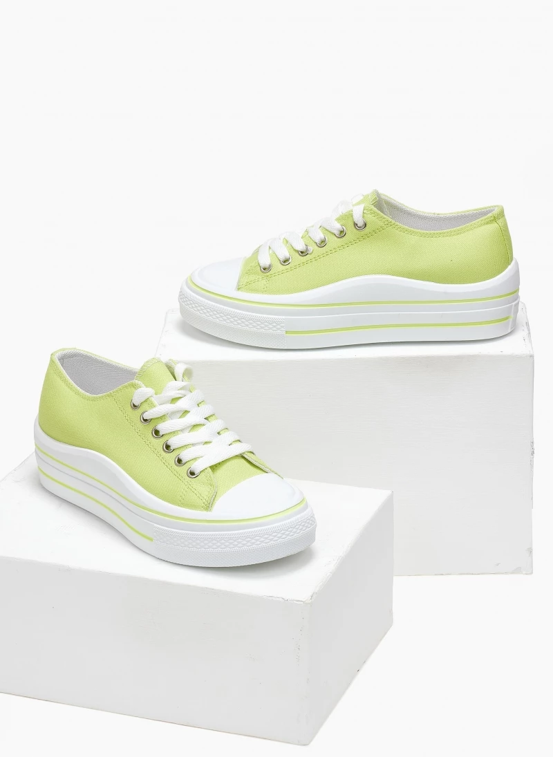 Sneakers πάνινα.Έχουν διπλή σόλα με ρίγα και διχρωμία.