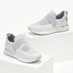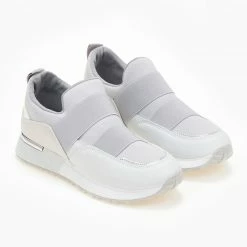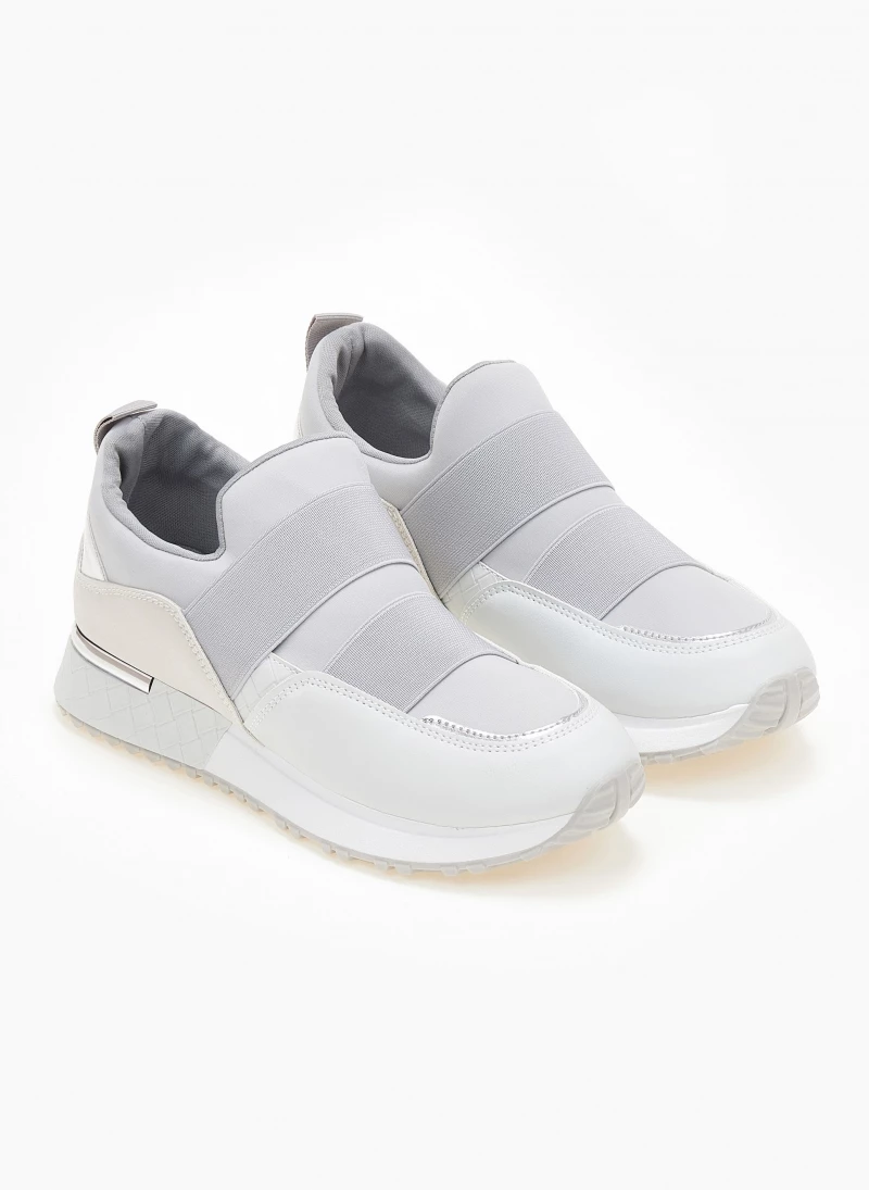 Slip on sneakers με λάστιχα στο επάνω μέρο. Έχουν ανάγλυφο σχέδιο με μεταλλικό στοιχείο στη σόλα.