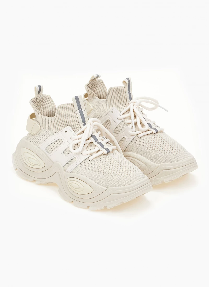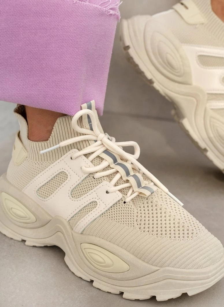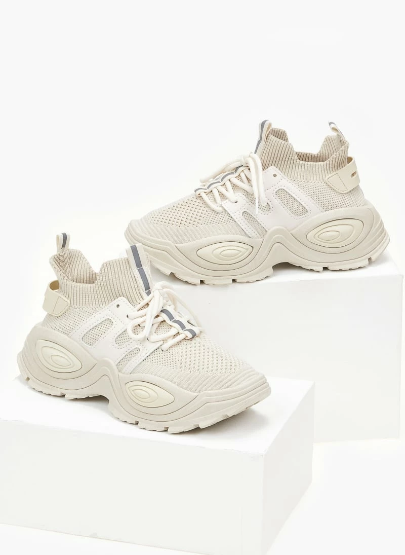 Sneakers slip on με chunky όλα. Έχουν θηλάκι στο πίσω μέρος και φάσα με ρίγα στα κορδόνια.
