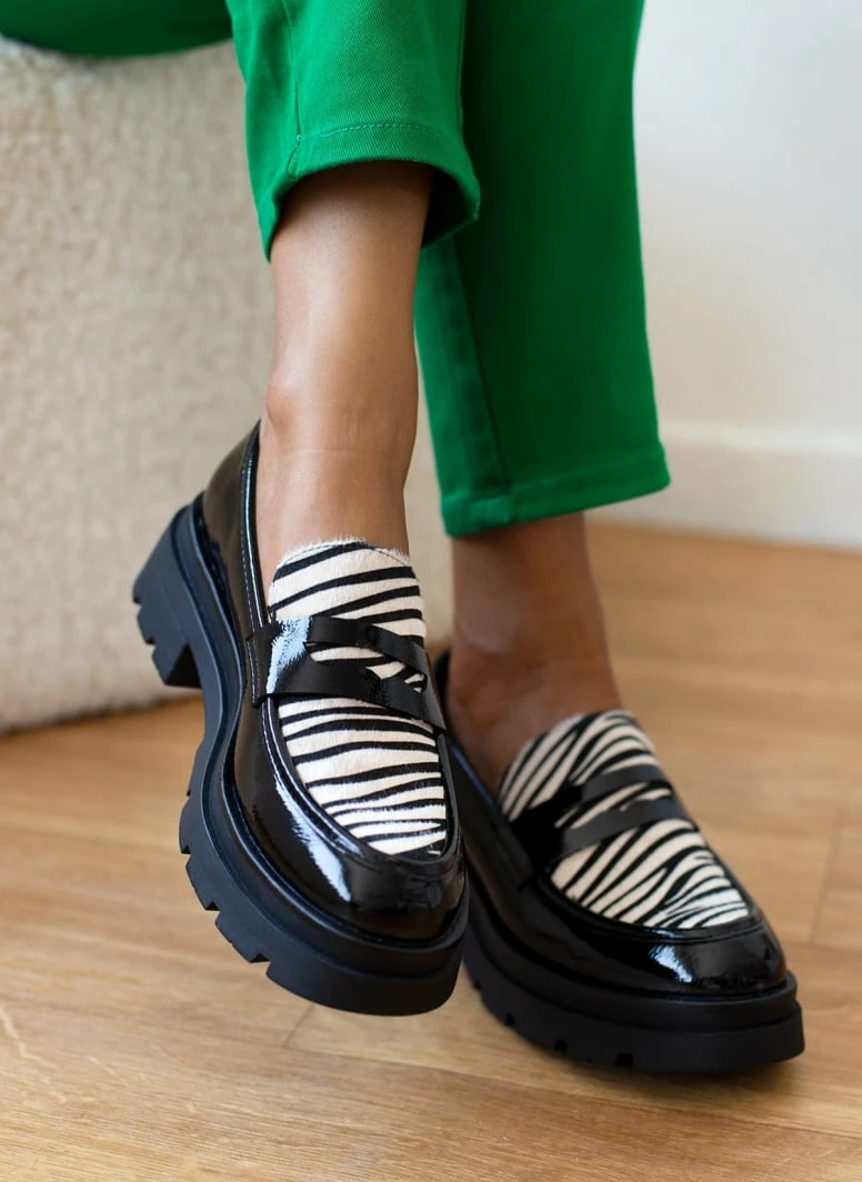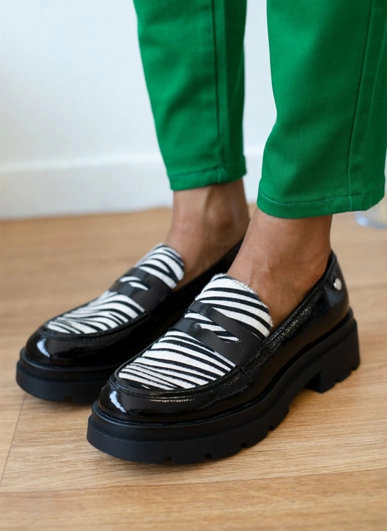 Oxfords λουστρίνι Xti. Έχουν λεπτομέρεια οικολογικό ponyskin. Τρακτερωτή σόλα. Vegan approved.