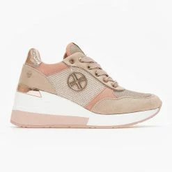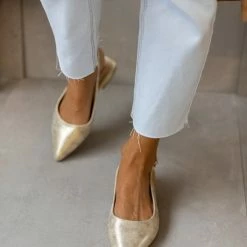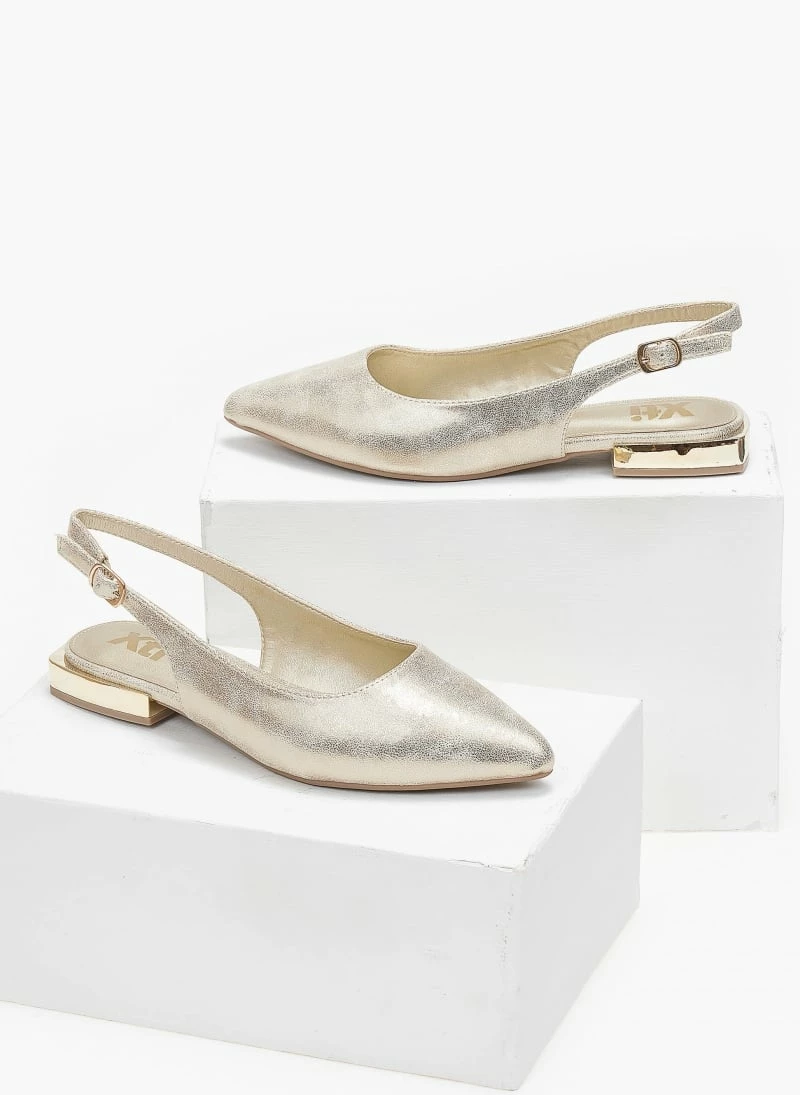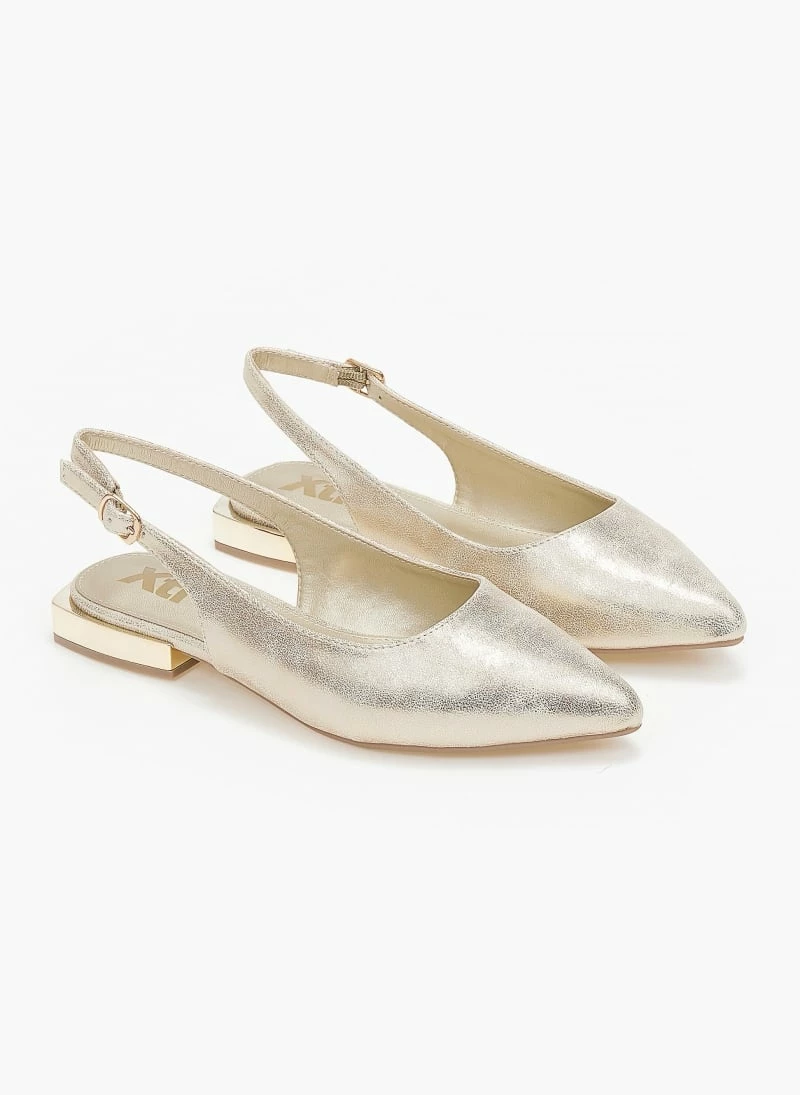 Μπαλαρίνες Xti suede μυτερές. Δένουν με λουράκι στο πλάι. Έχουν τετράγωνο μεταλλικό τακούνι. Peta vegan approved.