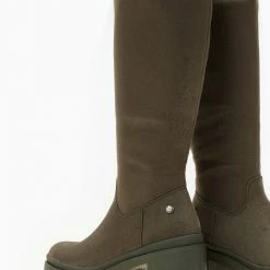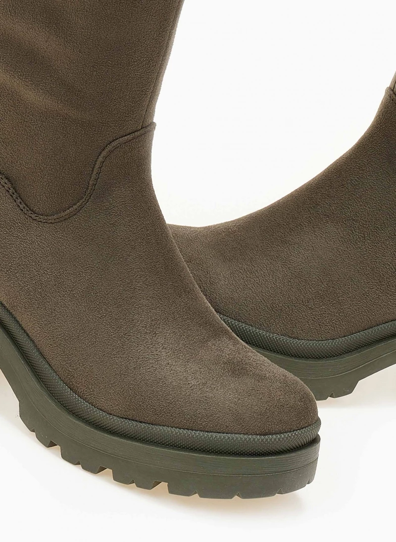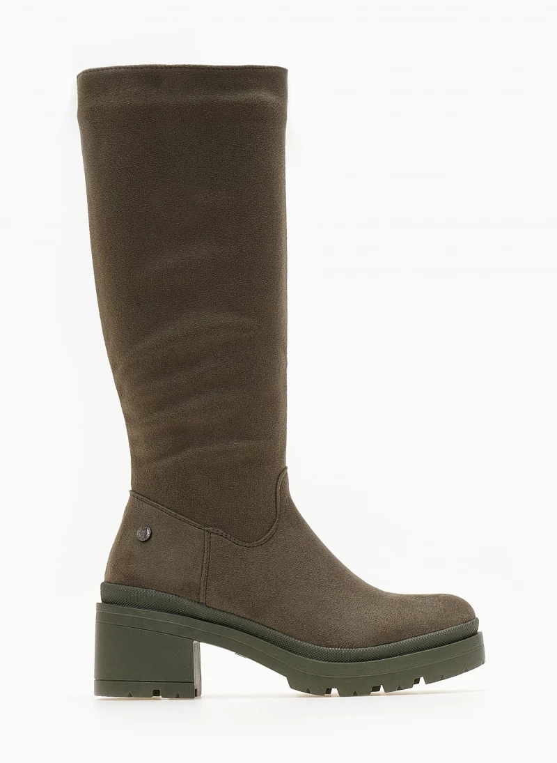 Μπότες casual από suede ύφασμα. Έχουν χαμηλό τετράγωνο τακούνι. Στρογγυλή γραμμή. Vegan approved.