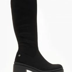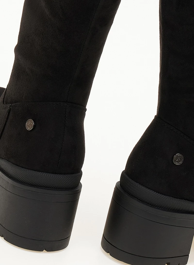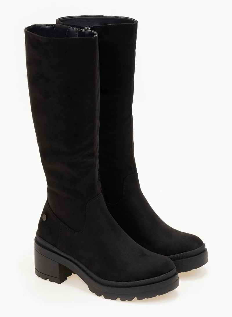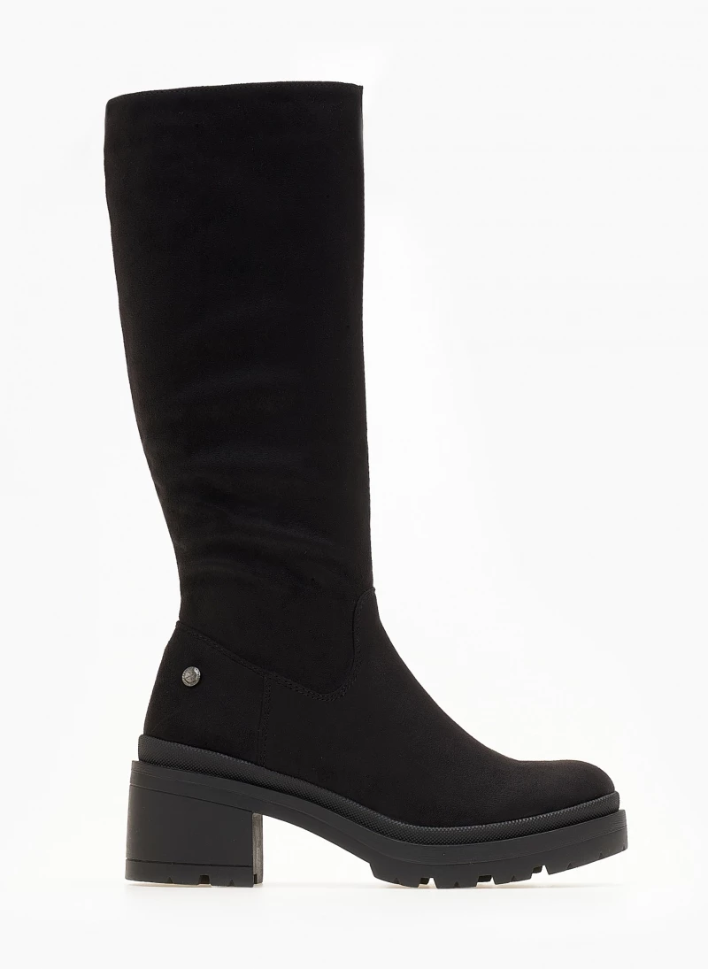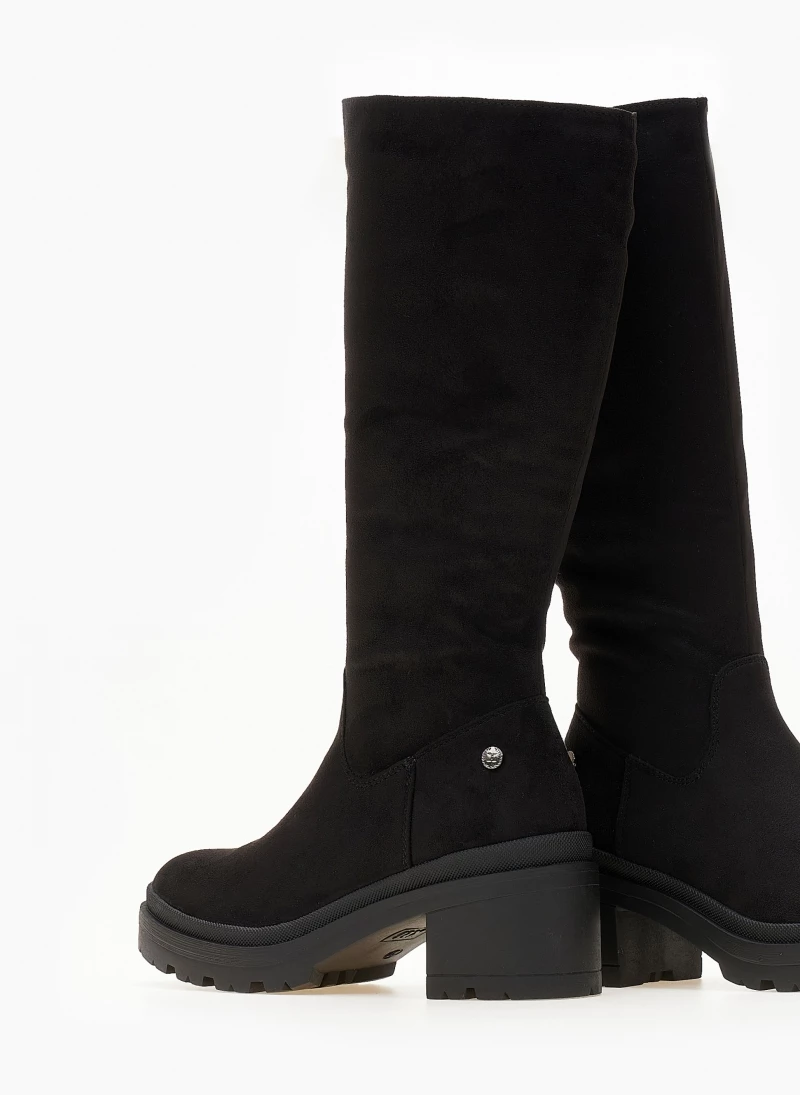 Μπότες casual από suede ύφασμα. Έχουν χαμηλό τετράγωνο τακούνι. Στρογγυλή γραμμή. Vegan approved.