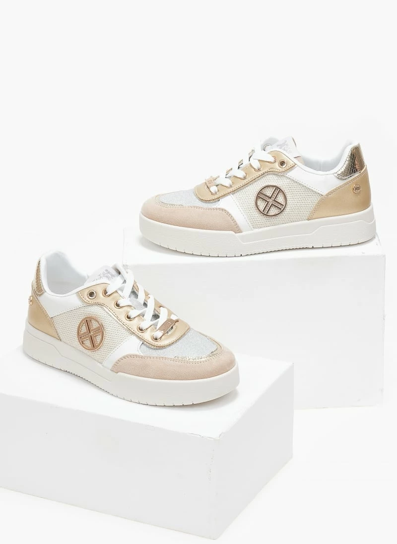 Sneakers Xti με συνδιασμό υλικών και glitter. Έχουν λεπτομέρεια μεταλλικό χρώμα. Μεταλλικό σχέδιο στο πλάι. Peta vegan approved.