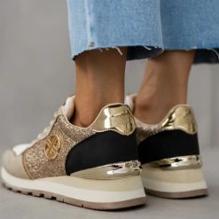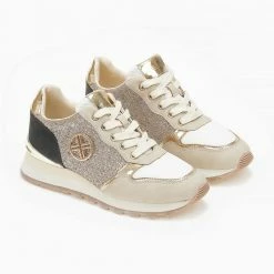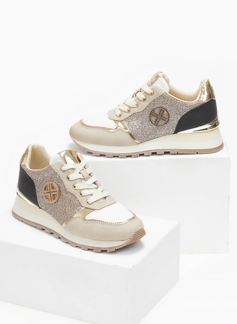 Sneakers Xti με glitter.Έχουν λεπτομέρεια μεταλλικό χρώμα. Μεταλλικό λογότυπο στο πλάι. Peta vegan approved.