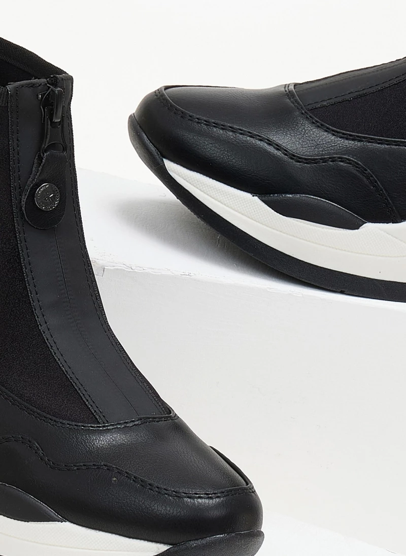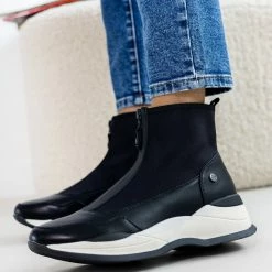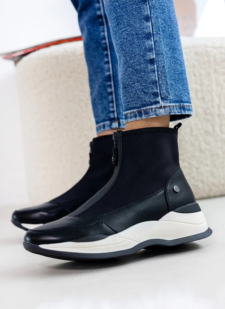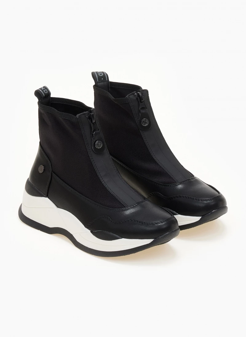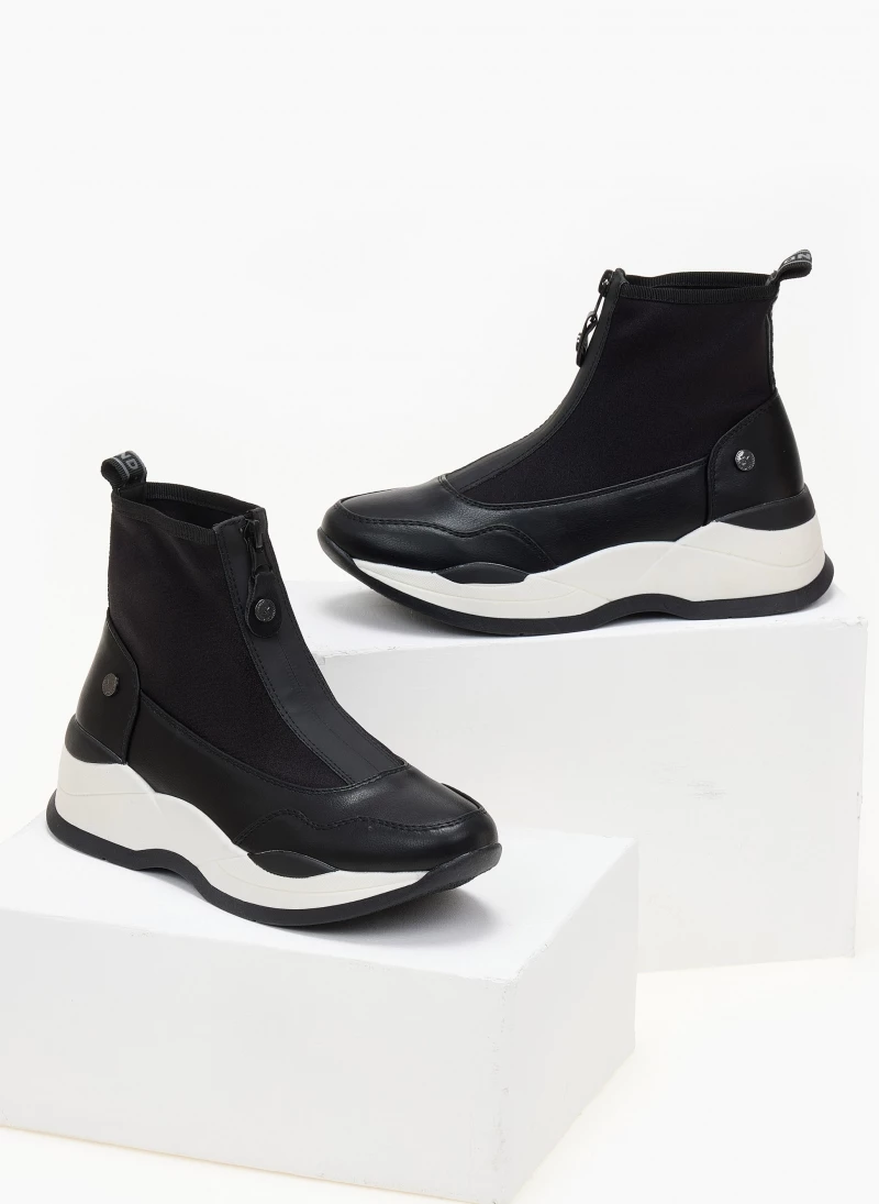 Sneakers μποτάκια XTI με chunky σόλα. Κλείνουν με φερμουάρ στη μπροστινή πλευρά. Συνδυάζουν ύφασμα και τεχνόδερμα.