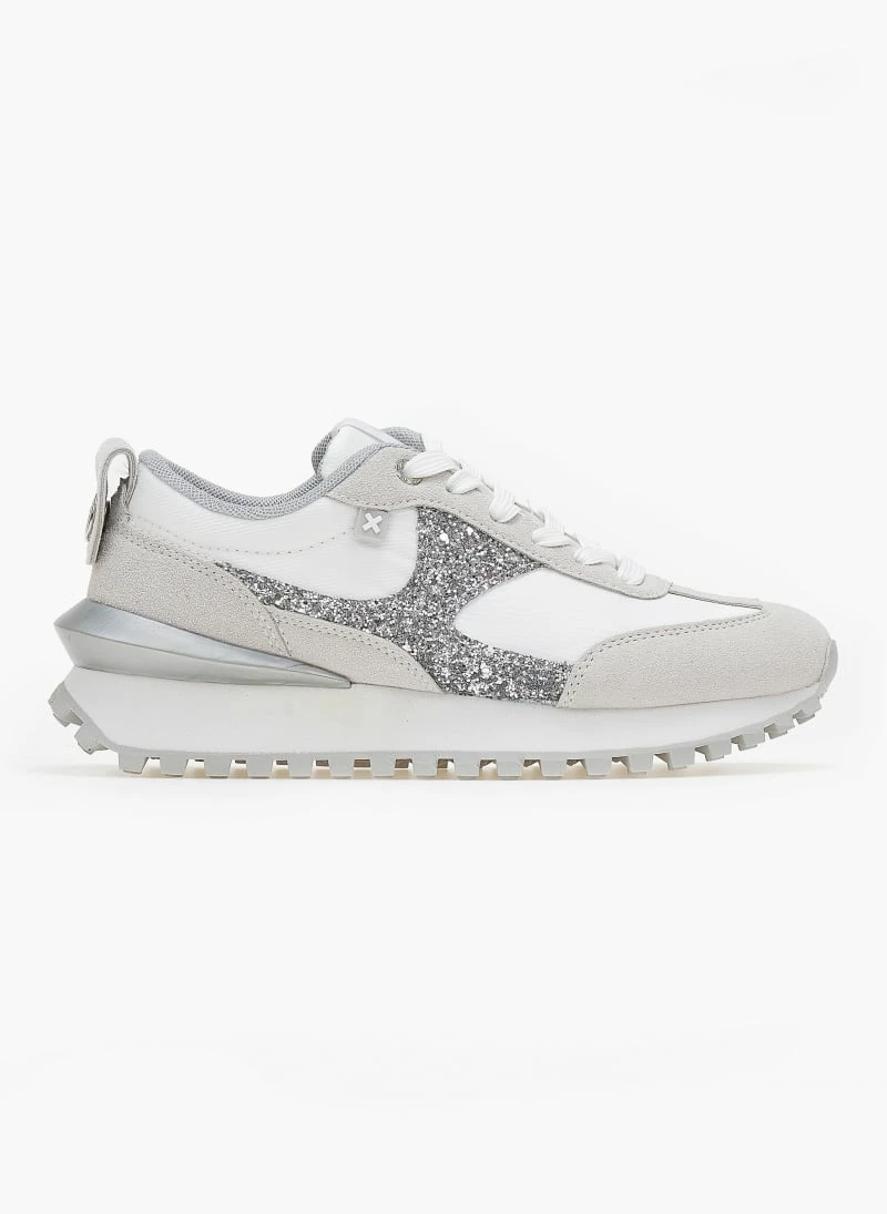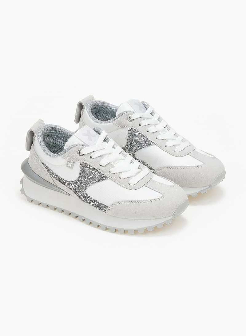 Sneakers Xti απο συνδιασμό υλικών. Έχει glitter λεπτομέρεια στο πλάι. Έχει σόλα τρακτερωτή. Peta vegan approved.